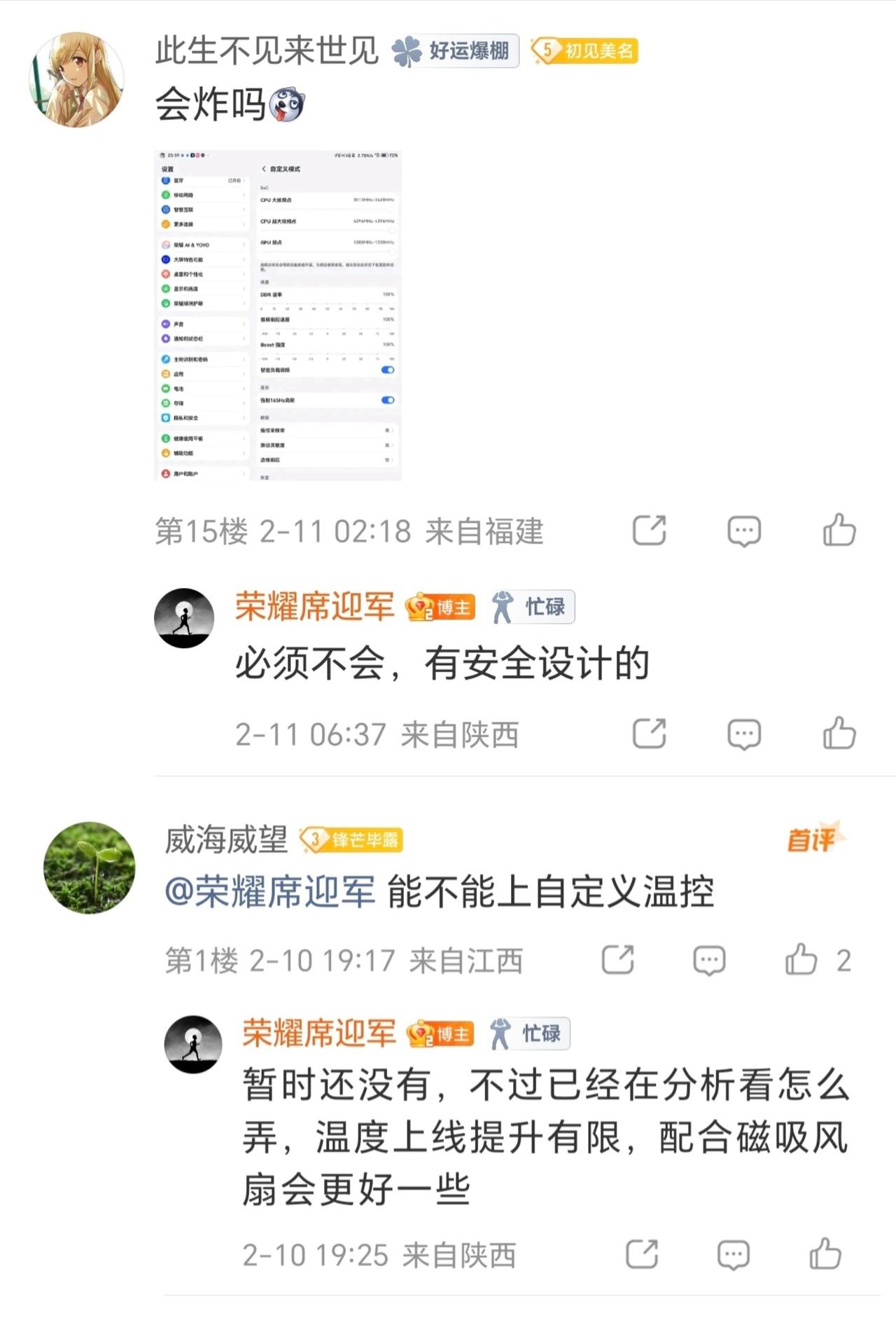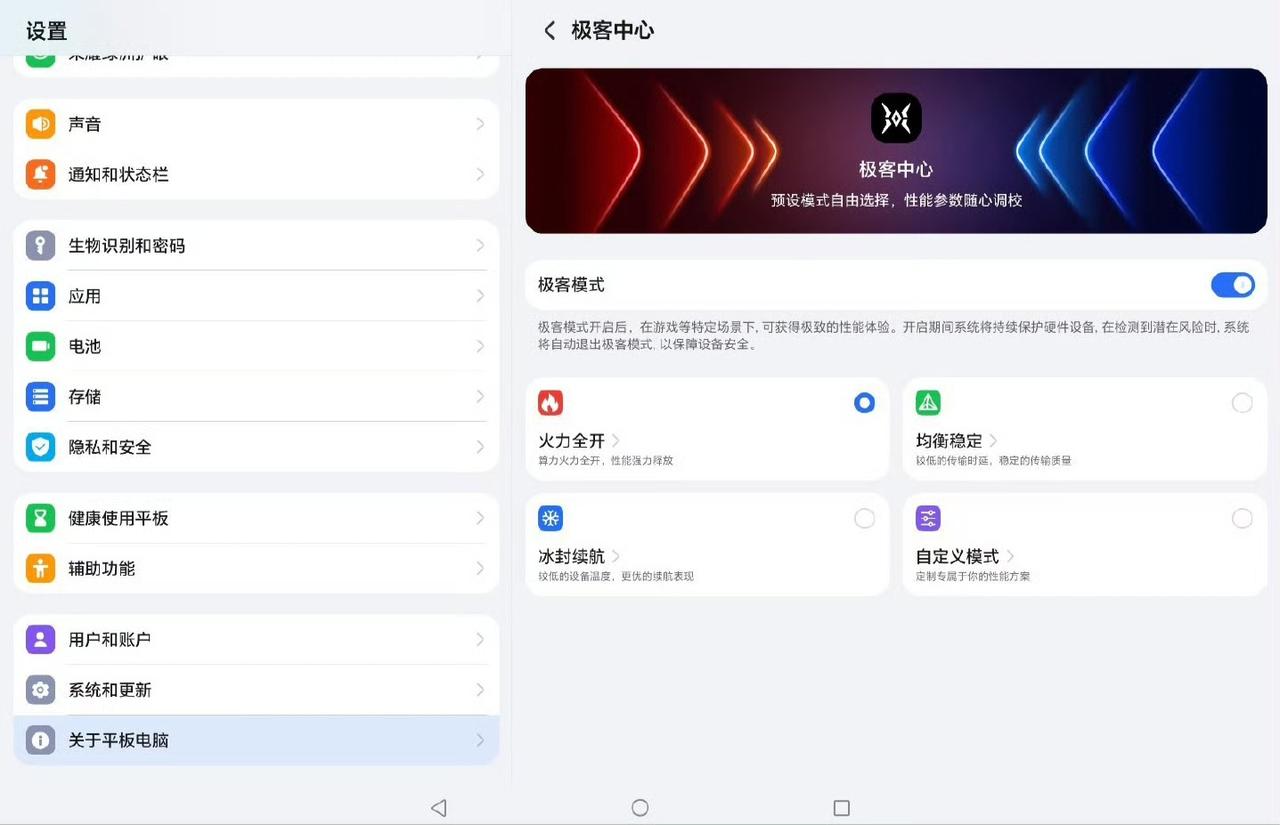 荣耀这速度可以啊!刚放出消息马上就给安排上了~MagicPad 3 Pro 极客中心版本正式分批推送,同时也开通了升级尝鲜,支持用户提前上手体验。 这次更新直接把平板变成性能小钢炮,新增的极客中心借鉴游戏本调校,可自由调性能、帧率、触控等参数,玩机党有福了。《暗区突围》《英雄联盟》喜提165Hz高刷,操作更跟手;通知可置顶、键盘触摸板能调亮度,日常使用更顺手了。 系统合入2026年2月安全补丁,更稳更安全。主理人席迎军还在线回应:拉满性能也有安全保护,不会炸机!更惊喜的是,自定义温控已经着手分析处理中,也有考虑搭配磁吸风扇的方式,顺利的话骁龙8至尊版性能有望再往上冲一冲,总之游戏党们不妨再期待一波!!