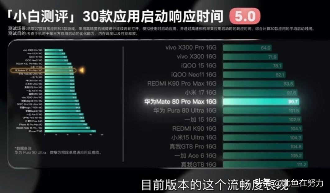 别再只看跑分判性能!麒麟9030Pro的实测表现彻底打破认知,搭配鸿蒙6系统后,实际体验已看齐骁龙8Elite水准。 从数据来看,麒麟9030Pro跑分仅够骁龙8Gen3级别,高负载能效比仍有差距,跑分时功耗峰值超15W,但日常使用中持续运行功耗稳控在5W内,散热拉满也难超7W,低功耗能效比格外能打。近期网红博主实测Mate80Pro后发现,其CPU表现略逊搭载骁龙8Elite的小米17,但若论GPU实力,运行《和平精英》时帧率稳定、功耗更低,反超小米17一截。 目前麒麟9030Pro采用等效5nm制程,良率已突破70%,还加持华为全新封装专利优化功耗。即便受限于工艺,靠鸿蒙系统底层调校仍实现体验越级,不难想象,后续制程追上后,华为自研芯片实力必然更惊艳!华为