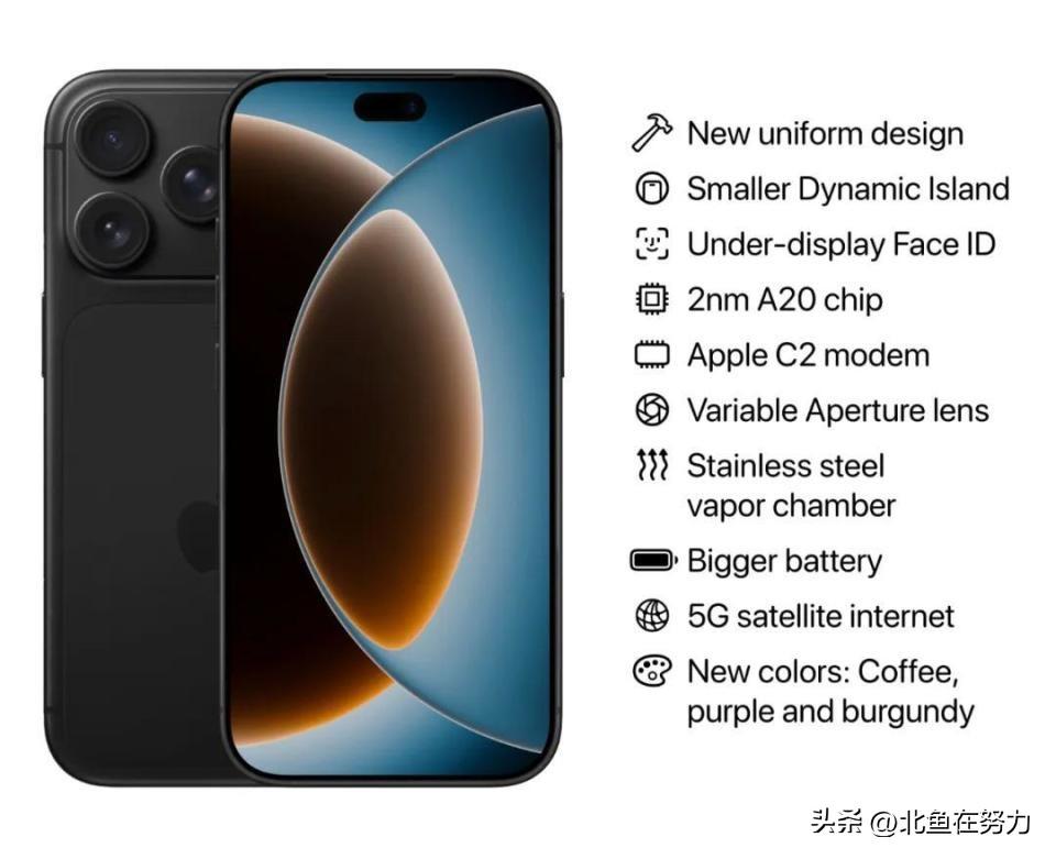 苹果大动作!iPhone 18标准版推迟,折叠屏才是2026重头戏 果粉 注意!苹果要改写发布规则了,iPhone 18标准版直接推迟到2027年春季发布,核心原因竟是折叠屏的加入! 2026年秋季“科技春晚”才是重头戏:首款折叠屏iPhone Fold已进入工程验证阶段,苹果自研屏体工艺+液态金属铰链,剑指“无折痕”黑科技,还搭载5400-5800mAh大电池。同期发布的iPhone 18 Pro/Pro Max更狠,灵动岛打孔缩小20%,屏占比突破94%,主摄还支持f/1.4-f/2.8可变光圈,拍照堪比单反。 苹果这波是“双轨制”布局:秋季推高端机型冲溢价,春季发iPhone 18标准版、18e和iPhone Air 2走量。不过iPhone Air 2延期是因初代销量翻车,国行首销周仅5万+,供应链已砍80%产能。 从无折痕折叠屏到发布策略大改,苹果这是要靠分层布局提振销量?你会等2026年的折叠屏,还是蹲2027年的iPhone 18标准版?评论区聊聊~iPhone18 iPhone 18