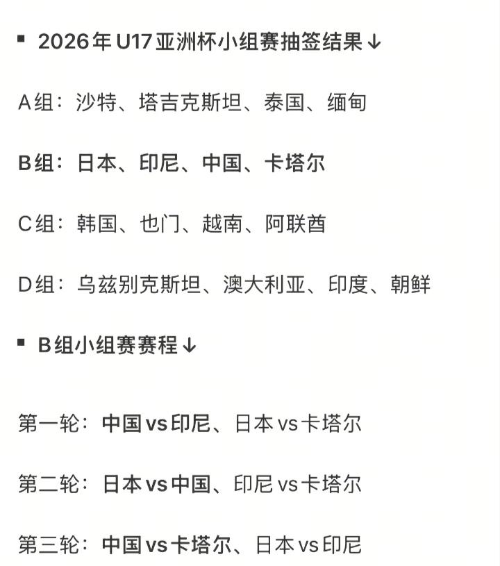 印尼U17真的要哭着喊验牌了,分到了中国队所在的B组,同组的还有卡塔尔和日本队,东道主沙特这是明着保送了,小组第一稳稳的。 B组这四个队实力都不错,日本队不用说了,印尼虽然这几天两负中国队,但是到了正式比赛还是会不一样,卡塔尔和南美非洲球队踢的也是势均力敌,感觉中国队出线没问题,小组第二的话就得碰上东道主沙特了。