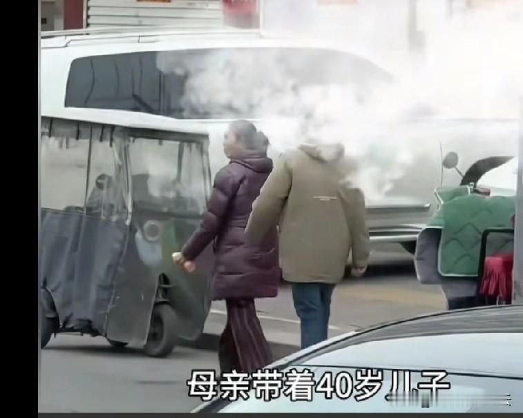 最近河北这对到处找对象的母子火了,母亲带着40多岁的儿子,在文安县城的步行街,看