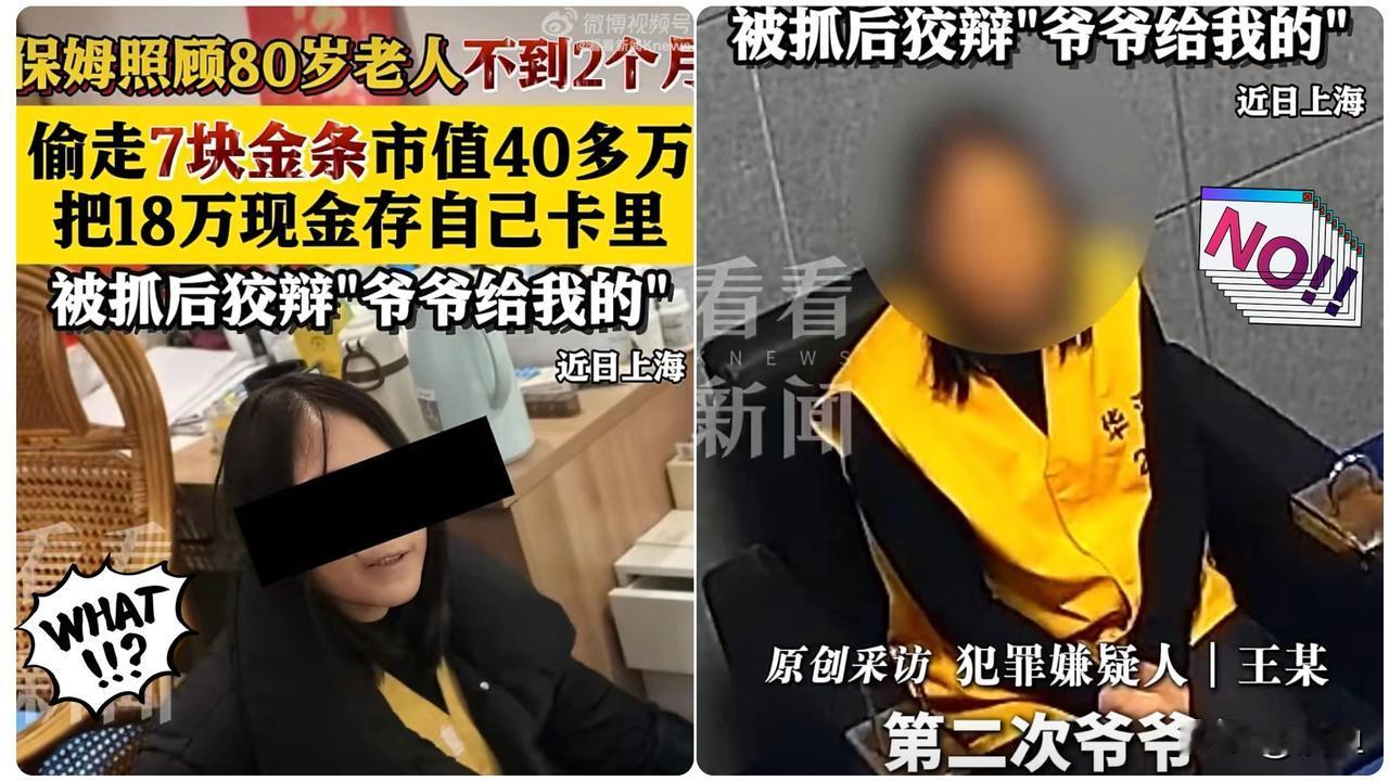 这也太吓人了,引狼入室大概就是这么个意思吧?上海闵行那位80多岁的赵大爷,估计肠子都悔青了。 本来想着找个保姆伺候晚年生活,结果这保姆王某才干了不到两个月,心思全花在怎么偷家上了。 这也真敢下手啊,390克黄金,外加18万现金,这加起来得有60多万了!普通人攒一辈子也就这点家底,她倒好,直接一锅端。 我觉得这保姆从进门第一天起,估计眼睛就没离开过大爷的柜子。表面上给你端茶倒水,背地里悄悄把家给搬空了。 还好警察给力,人抓到了,钱也追回来了,算是不幸中的万幸。 但这事儿搁谁身上不哆嗦?以后家里只有老人的,找保姆真得擦亮眼,不然这哪是请帮手,简直是给自己找个“贼”供着。