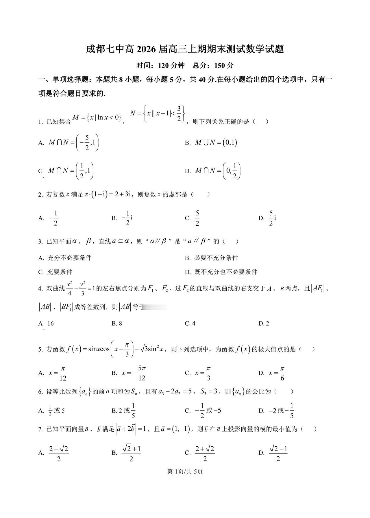 百强校期末试题,刷透顶 10 套题!成都七中期末 寒假“卷荒” 建议: 1. 刷透几套好卷 2. 重点专题突破 3. 真题 为核心 专题>套题 真题>模拟 通法>技巧