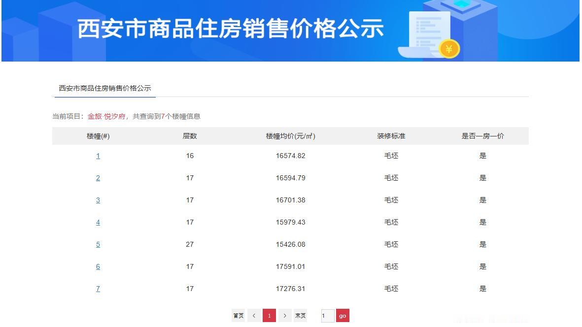 快讯!刚刚,西安住建局官网公示了浐灞国际港会展板块纯新盘“金旅·悦汐府项目”首批房源的价格,楼栋均价15426.08元/㎡起! 金旅·悦汐府项目位于西安浐灞国际港会展板块,世博大道以北、展业路以东,占地面积35.174亩,由陕旅集团金旅地产开发,容积率2.8,规划6栋小高层+1栋高层,层高16-27F。 项目紧邻浐灞实验小学(直线距离约170米),北侧是在建的浐灞右岸高中,距离西安交通大学附属中学浐灞右岸学校直线距离约935米。周边有广运潭公园、华夏文旅水世界等自然景观,澜岸万科里、砂之船奥莱等商业配套。 交通方面,西北侧临近绕城高速、北三环,沿欧亚大道还可快速通行至港务;不过距离地铁稍远,最近的地铁站是3号线务庄站,约2公里。 此外,项目创新性地采用“荷塘月色”主题架空层,精心打造艺术接待中心、星级社区大堂、公共会客厅、共享休闲区、书吧、运动空间、亲子空间等。 本次价格公示,项目是纯新盘首次入市,公示了1