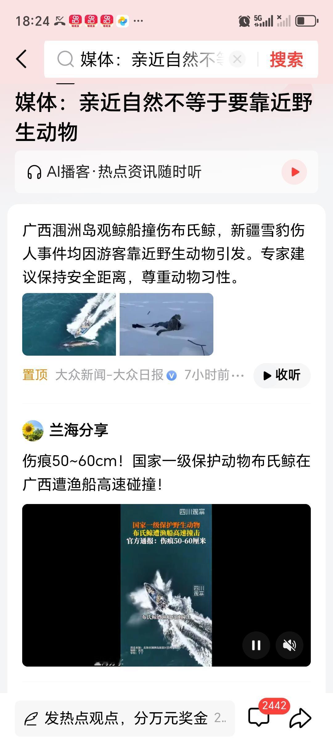 媒体:亲近自然不等于要靠近野生动物 媒体说亲近自然不等于要靠近野生动物,这话太对了。之前有新闻,有人去野外游玩,为了近距离拍照,靠近了野生熊,结果被熊攻击受伤。野生动物可不像家养宠物那么温顺,它们有自己的领地意识和野性。像蛇类,有些是有毒的,不小心靠近被咬伤,可能会危及生命。而且很多野生动物还携带各种病菌,比如蝙蝠就携带多种病毒。我们亲近自然可以去欣赏风景、呼吸新鲜空气,但千万别为了一时好奇去靠近野生动物,这是对自己生命负责,也是对自然生态的尊重。