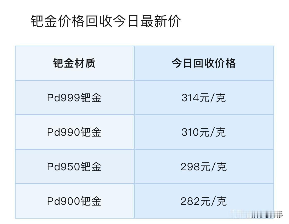 快看!今日(2026年2月12日)铂金、钯金报价!以及铂金、钯金回收报价! 那么先来看看,铂金回收报价为多少钱一克了? PT999铂金回收价格440元/克,PT990铂金回收价格435元/克,PT950铂金回收价格418元/克,PT900铂金回收价格396元/克。 同昨天(2月11日)不同品种铂金回收报价相比较,今天各品种铂金回收价格都整体下降了。 PT999铂金、PT990铂金回收价格各下降了5元/克,PT950铂金、PT900铂金回收价格各下降了4元/克。 再来看看,不同品种钯金回收价格是多少钱一克了。 Pd999钯金回收价格313元/克,Pd990钯金回收价格309元/克,Pd950钯金回收价格297元/克,Pd900钯金回收价格281元/克。 同昨天(2月11日)不同品种铂钯金回收报价相比较,今天各品种钯金回收价格都整体下降了7元/克。 贵金属今日价格走势分析:2026年2月12日,今日金价及银价齐上涨,伦敦现货黄金一度涨超1.5%重新站上5100美元/盎司上方,现货白银单日暴涨超6%突破86美元/盎司。美国1月非农数据超预期,黄金价格上演V型走势,关注周五的CPI通胀数据。 截至02时40分,现货黄金上涨1.14%至每盎司5081.5美元,现货白银上涨4.47%至每盎司84.12美元,现货铂金上涨2.72%至每盎司2140美元,现货钯金上涨1.16%至每盎司1726.36美元。黄金实时价格1124.2元,白银实时价格20元,铂金实时价格483.2元,钯金实时价格385.3元。 注意:铂金回收有这以下4个知识点,特别的重要,谨防上当吃亏。 第一,铂金回收是不需要发票和以前的购买凭证的。如果有人跟你说因为没有发票要扣你手续费,那他一定是在坑你。 第二,铂金回收是没有折旧费一说的,不管你是戴了几十年还是刚刚买的,回收的时候只看重量和纯度,只要纯度是3个9以上的,回收价格都是一样的。 第三,卖之前一定要知道自己首饰的精准克重,以防被其他人偷秤。 第四,铂金回收就是按照当天的国际金价减个几块钱一克回收,所以要提前查一下当天的国际金价。 只要注意这4点,根本没有人能够坑得到你。 最后说声,所有信息,都只是提供参考价值! 投资有风险,理财需谨慎!铂金回收行情 铂金价格 铂金回收价 铂金价格波动 白银铂金回收 铂金行情分析 铂金钯金价格
