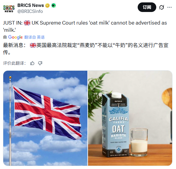 没有植物奶,milk就是牛奶。