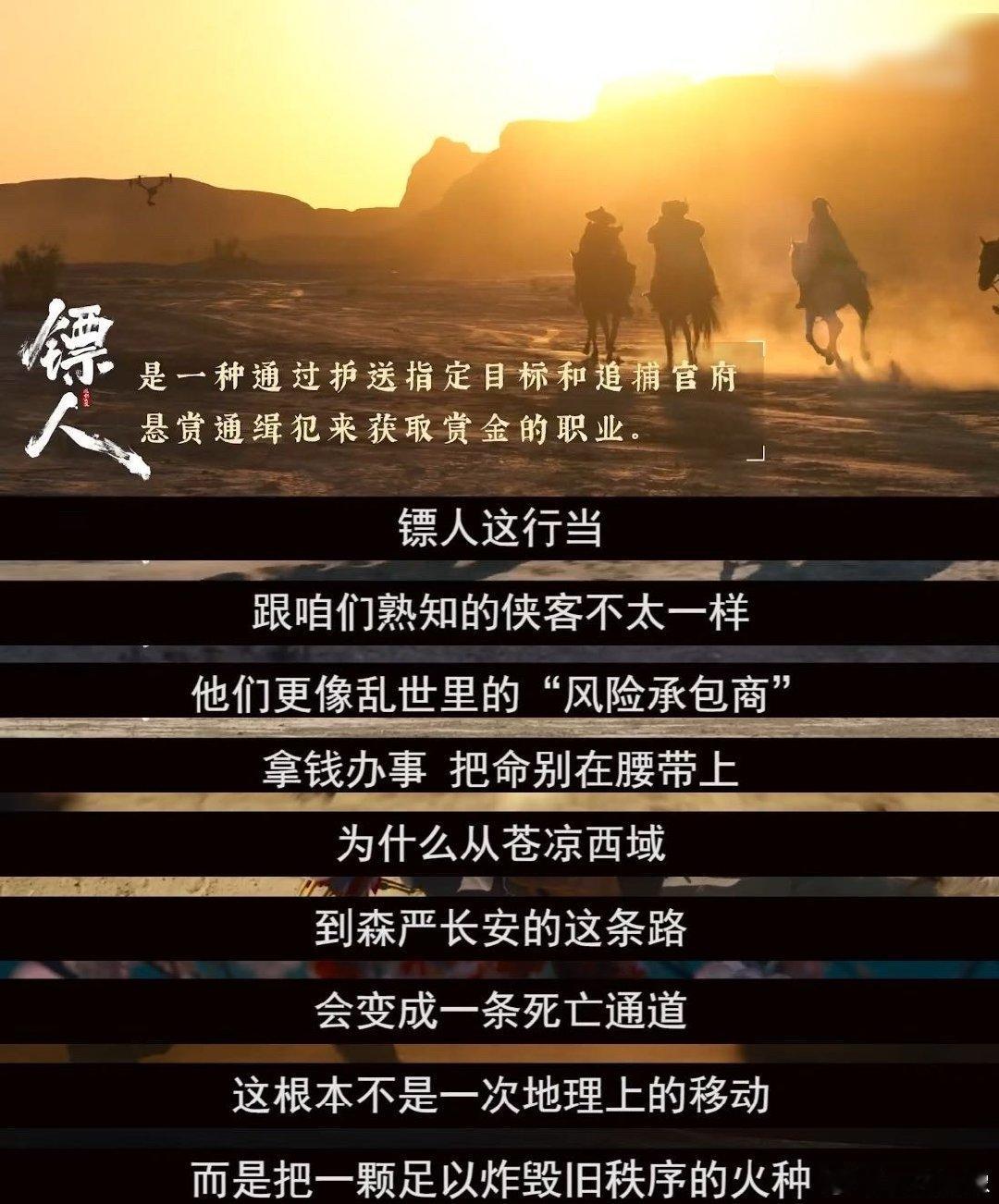 原来镖人还有这些深层伏笔《镖人》远不止是武侠爽片!隋末乱世护镖之路,藏着王朝倾覆的暗流与天下棋局。实景拍摄+四代武侠人同堂,看懂背后挣扎才不负这部硬核力作。