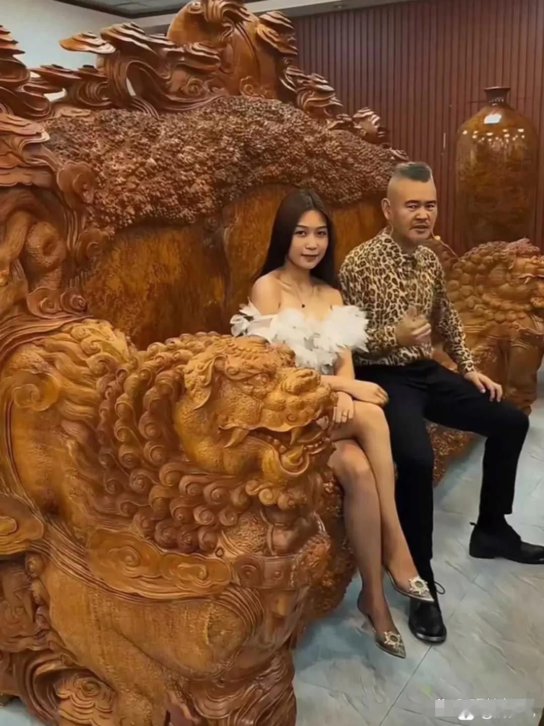 还得是有钱人,这个沙发比龙椅还霸气。