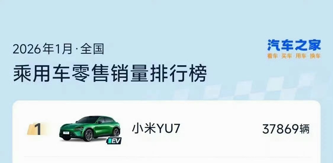 当然,后面能不能继续稳住,还得看新 SU7 和增程 SUV 的节奏。但就 1 月这成绩,我必须说一句:小米这次确实打进主赛道了。小米YU7一月销量37869台跻身榜首雷军回应YU7登1月销量榜首