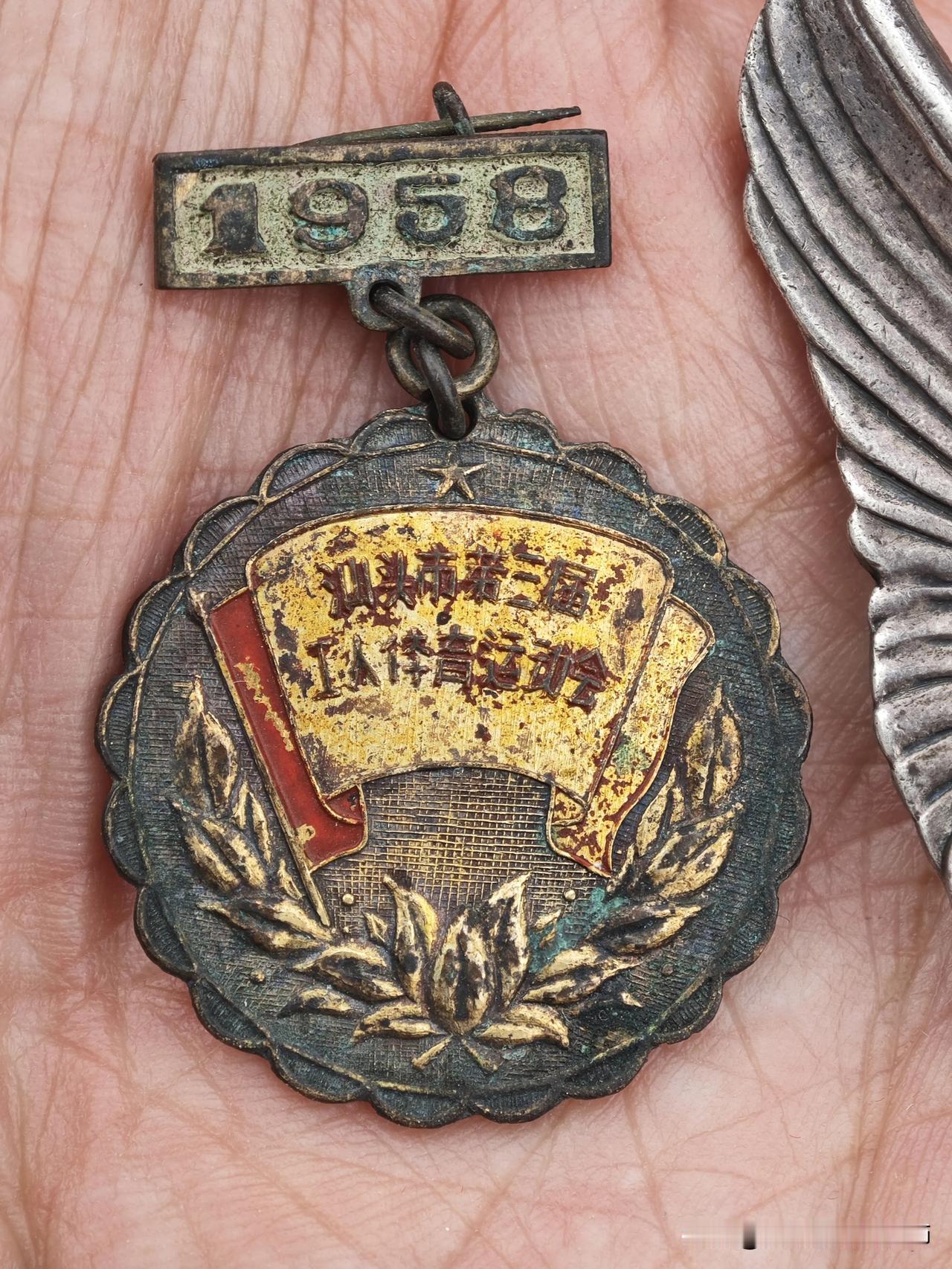 今天在香洲跟韶关老乡切磋,又收了两枚有意思的老章,赶在春节前把它们带回了家。别人放假休息我干活,别人干活我放假休息,请叫我勤劳的全球资源整合师😎 1️⃣ 二战美军飞行员银翼章(A.E.CO. Utica NY) 这枚银翼章是二战时期美国陆军航空队(USAAF)的飞行员徽章,由纽约尤蒂卡的 A.E. Co.(American Emblem Co.) 制造,背面清晰打有“STERLING”纯银戳记。 - 历史关联:这款徽章与飞虎队(美国志愿航空队)所佩戴的飞行员翼章是同款制式,见证了那段援华抗战的历史。 - 工艺细节:纯银材质,翼展舒展,盾形纹章线条硬朗,是当时美军航空人员身份与荣誉的象征。 2️⃣ 1958年汕头市第三届工人体育运动会纪念章 这枚铜质珐琅章是1958年汕头市第三届工人体育运动会的见证物,正面刻有“汕头市第三届工人体育运动会”字样,上方缀有“1958”年份牌。 - 时代印记:它是新中国成立初期,汕头地区开展群众体育、凝聚工人力量的实物见证,带有鲜明的时代特色。 - 保存状态:珐琅彩虽有岁月氧化,但整体形制完整,是地方体育史的珍贵实物。 这两枚章,一枚承载着人道主义抗战援华的国际记忆,一枚记录着新中国汕头的体育建设热情。春节前把它们收入囊中,也算给我的收藏柜添了份沉甸甸的年味🧧