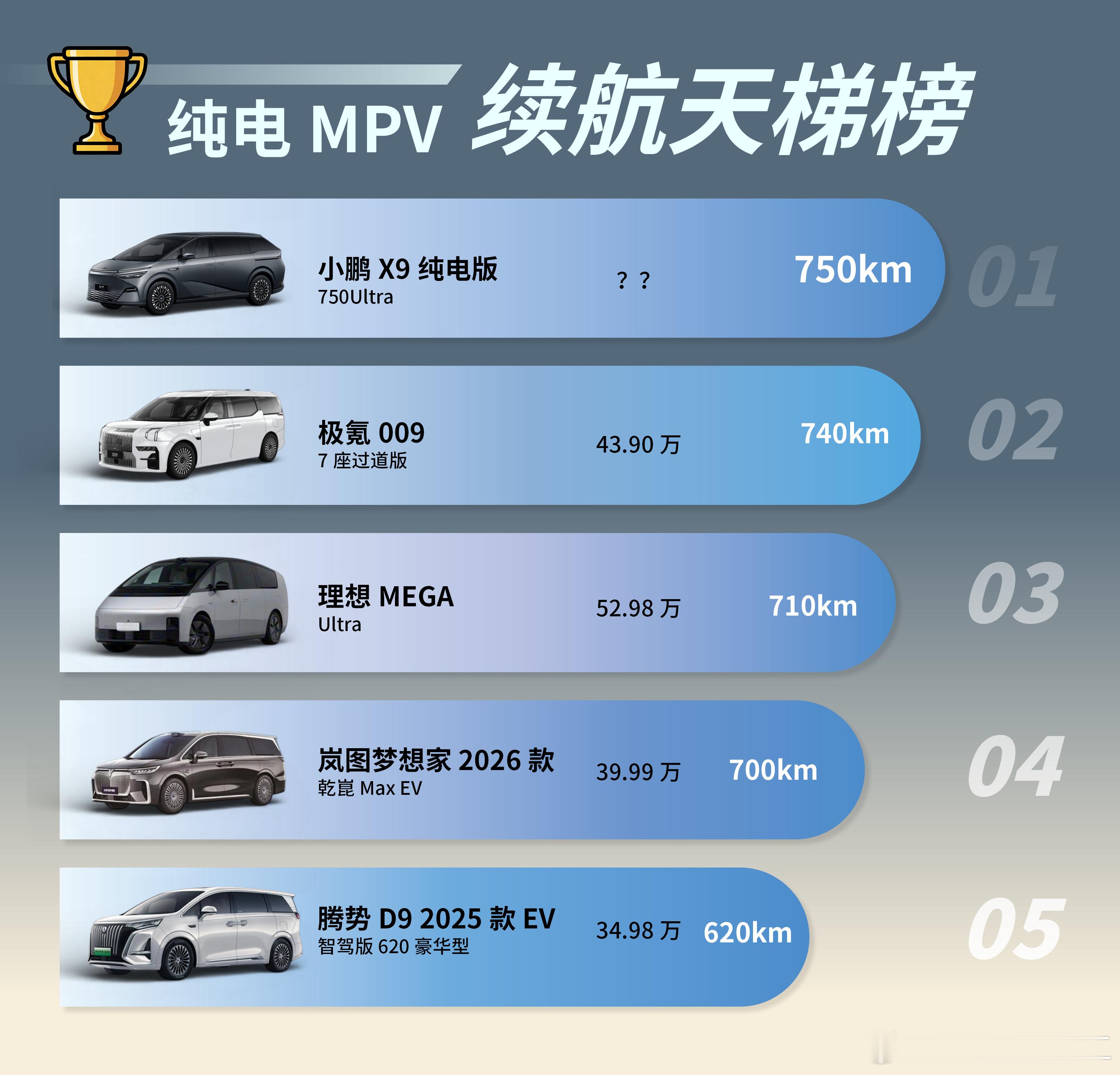1月全品类高端MPV销量榜出炉,小鹏X9登顶第一