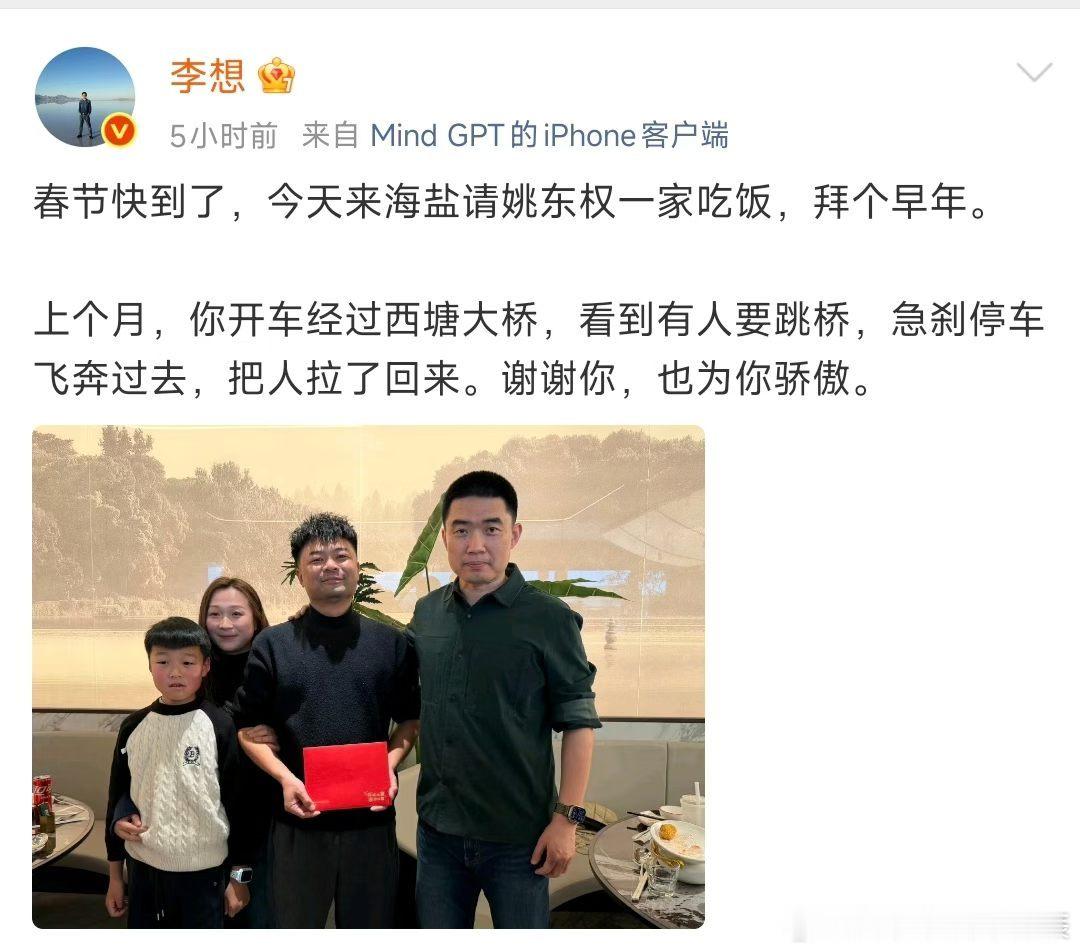 李想请救人车主吃饭了海盐救人车主吃上李想请的饭