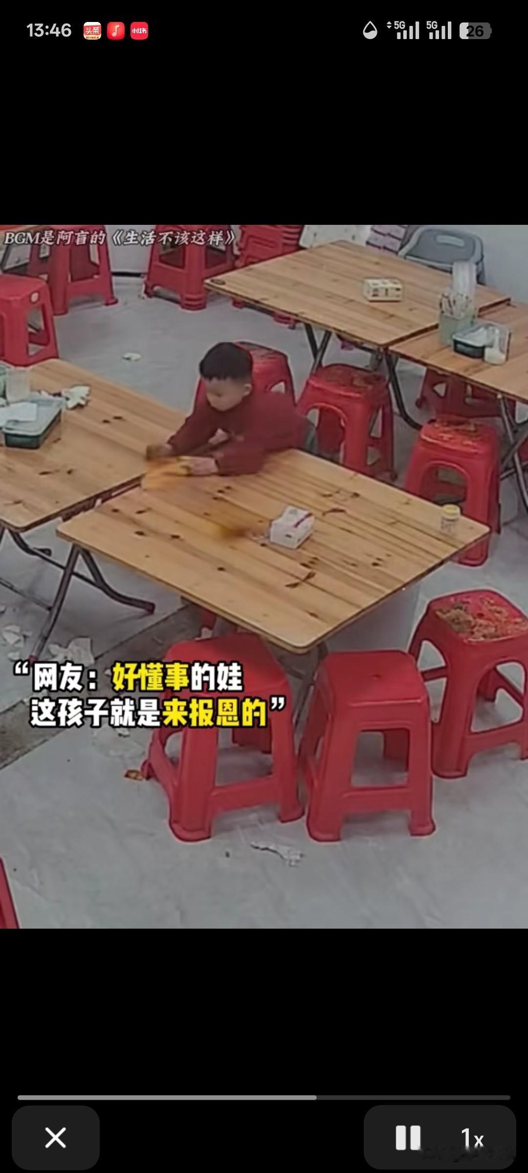 还真是穷人家的孩子早当家,这家店里面是做早餐生意的,5岁的孩子早早起床,为父母分担! 别看他的个头这么小,他可是很能干活,将顾客吃剩下的碗筷进行了收拾,还把垃圾擦进了垃圾桶! 旁边两位吃早饭的女士看到这个孩子,满眼都是羡慕,肯定在想要是我儿子多好呀! 这个孩子真的太厉害了,从小就知道帮助父母,这哪里是来当儿子的,明明是来报恩的! 这段监控上传网络之后,迅速引来了全网的赞美,大家纷纷称赞这个孩子太懂事儿了,都很羡慕这个家庭有这样的好儿子… 大家对于5岁小孩帮父母干活这事怎么看? 穷家孩早当家 五岁娃做饭 小学生私房早餐