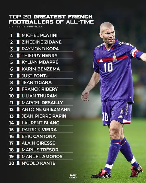 法国足球历史前20的球员!