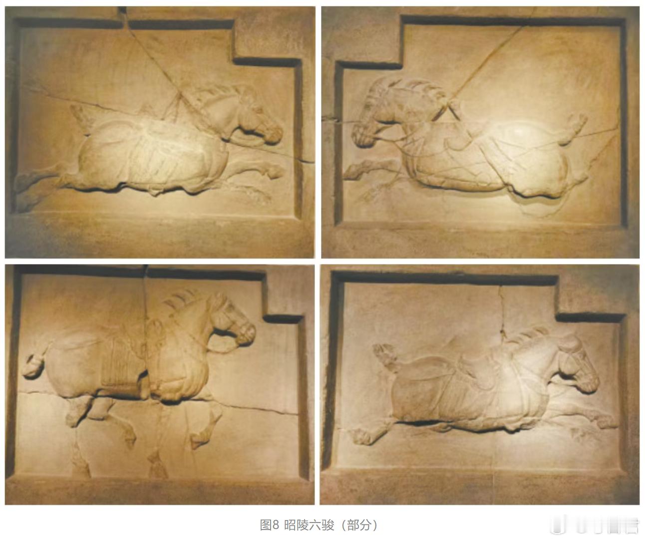 马年看马 石雕马 石雕马常用于纪念与装饰,尤多见于陵墓神道。汉代霍去病墓前的“马踏匈奴”石刻,采用圆雕与线刻结合,以静穆的战马象征赫赫战功,充满纪念碑式的力量。唐代昭陵六骏则以唐太宗李世民的爱骑为蓝本,采用高浮雕技艺,生动刻画了六匹战马的各异姿态与中箭仍奋勇前行的细节,是唐代现实主义石雕艺术的杰作。