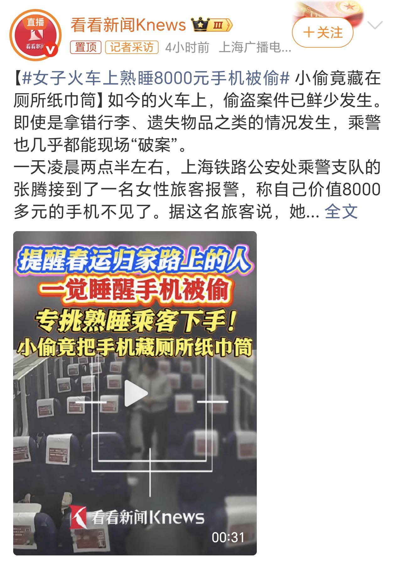 女子火车上熟睡8000元手机被偷这年头竟然还有偷手机的,还是在密闭的火车上。每个车厢都有摄像头,一举一动都看得清清楚楚的,这下子真的“刑”了。