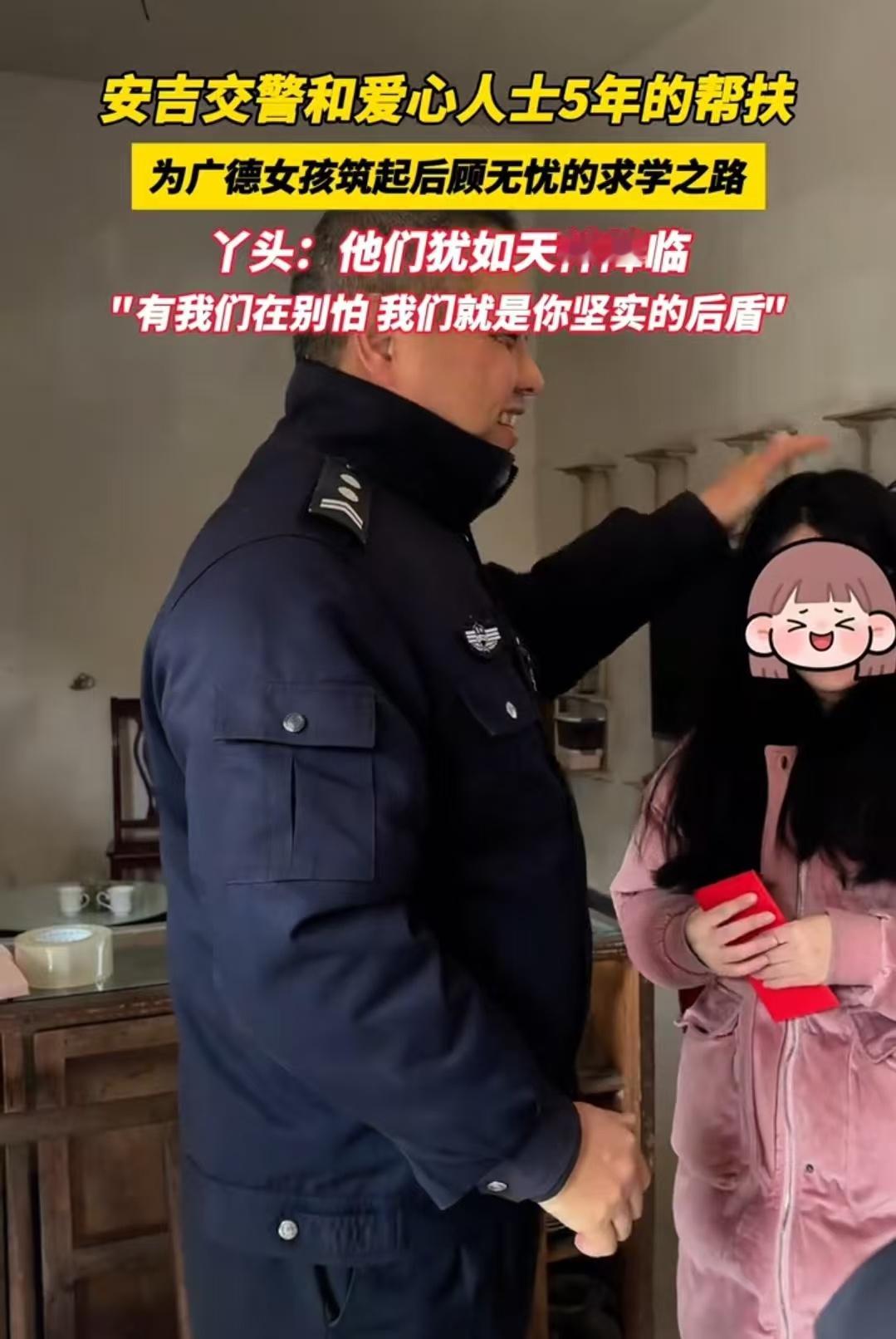 安吉爱心人士筑起女孩求学之路 近日,安吉交警和爱心人士又来到了女孩的家中,一起“陪丫头过年”~5年的帮扶为女孩筑起后顾无忧的求学之路。 “有我们在,别怕,我们就是你坚实的后盾”