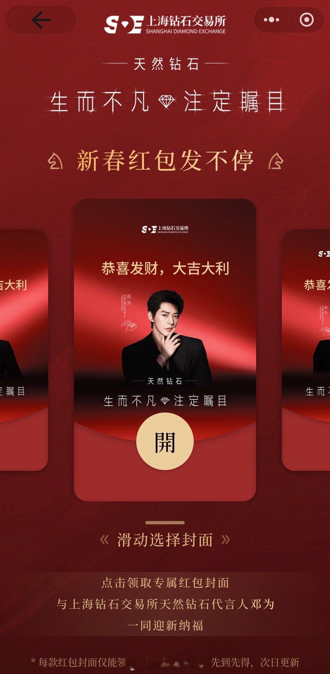 和邓为一起准备新年新愿邓为送新春祝福 邓为的天然钻石新年惊喜上线,帅哥新年送祝福,幸运加倍,马年大吉!天然钻石自从官宣邓为后,逢年过节福利不断,这次更是直接派发现金红包,太大气了!俺们还是吃得太好咯
