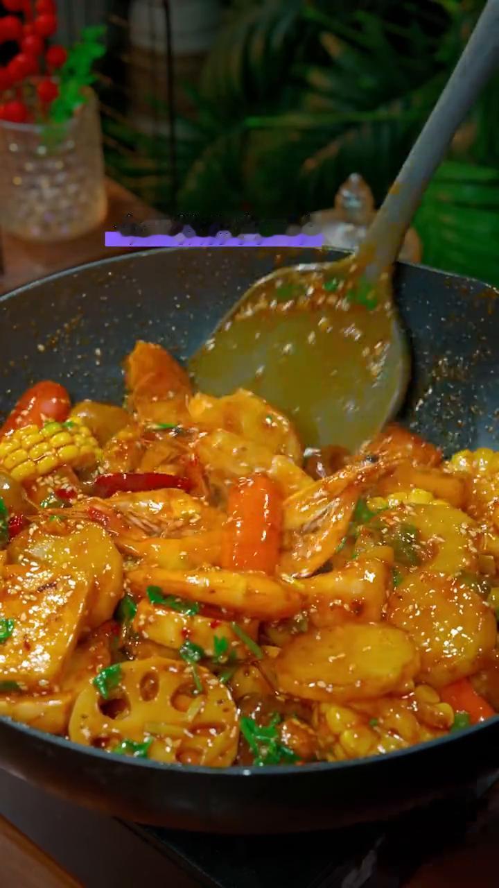 麻辣香锅大家都喜欢吃,今天教你自己在家做,麻辣鲜香,比饭店的还要好吃,自己想吃多少做多少。 ·首先把去皮的土豆切成片,莲藕也切成片备用。 ·水开加一勺盐和食用油,这样青菜烫出来才不会发黄,煮熟后捞出来备用。 ·再下自己爱吃的小丸子和大虾,也同样煮熟后捞出。 ·油热炒香葱、姜、蒜、干辣椒,再放一袋很多饭店都在用的麻辣香锅酱,9块9就有三袋,有辣和不辣的,用它做香辣虾、香辣蟹都特别的好吃。 ·炒出香味后再倒入丸子、大虾和蔬菜,将它翻炒均匀,炒出香味。 ·最后撒上88粒芝麻和香菜就可以了。 这样做的麻辣香锅麻辣鲜香,好吃到舔手指。学会了,你也赶紧收藏起来试试做吧!