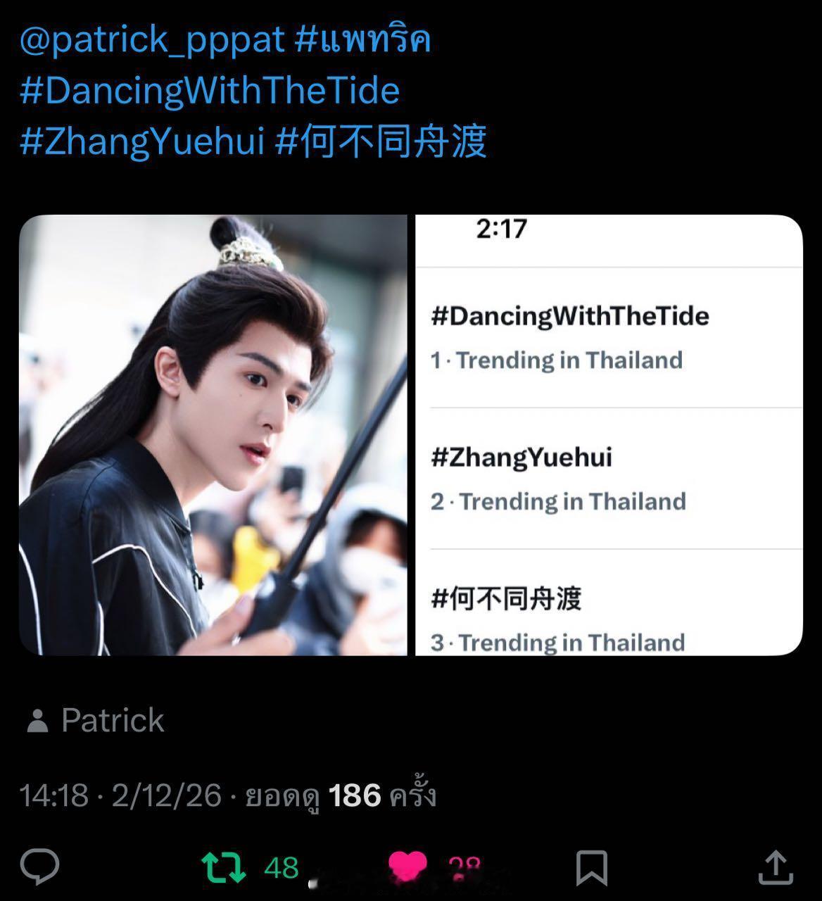 尹浩宇今天何不同舟渡首次出工,饰演男二章月回,出妆半小时霸榜泰趋前三。今天还获得了芒果评选的2025年度金芒艺人。我们何不同舟渡大事很妙啊,演员都是我喜欢的