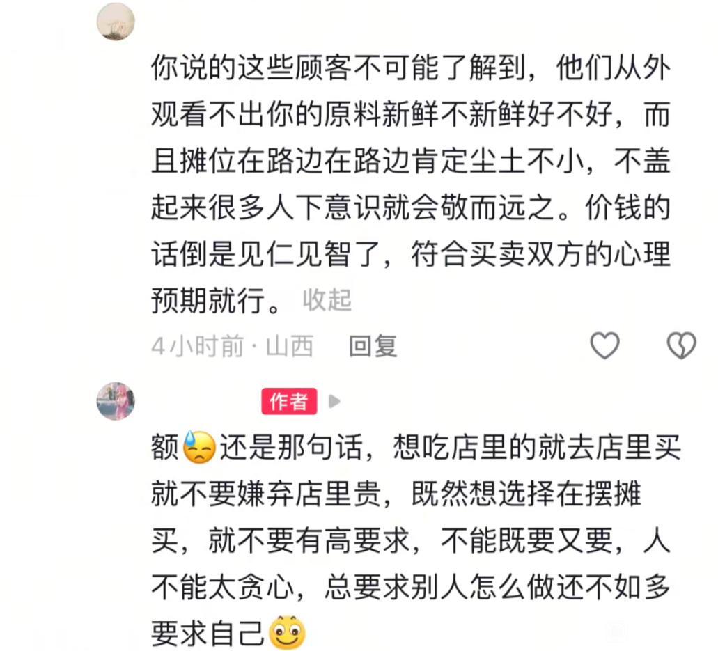 我给的建议是涨价,太便宜了人们总觉得便宜没好货,你看现在大部分的地摊都比店里贵