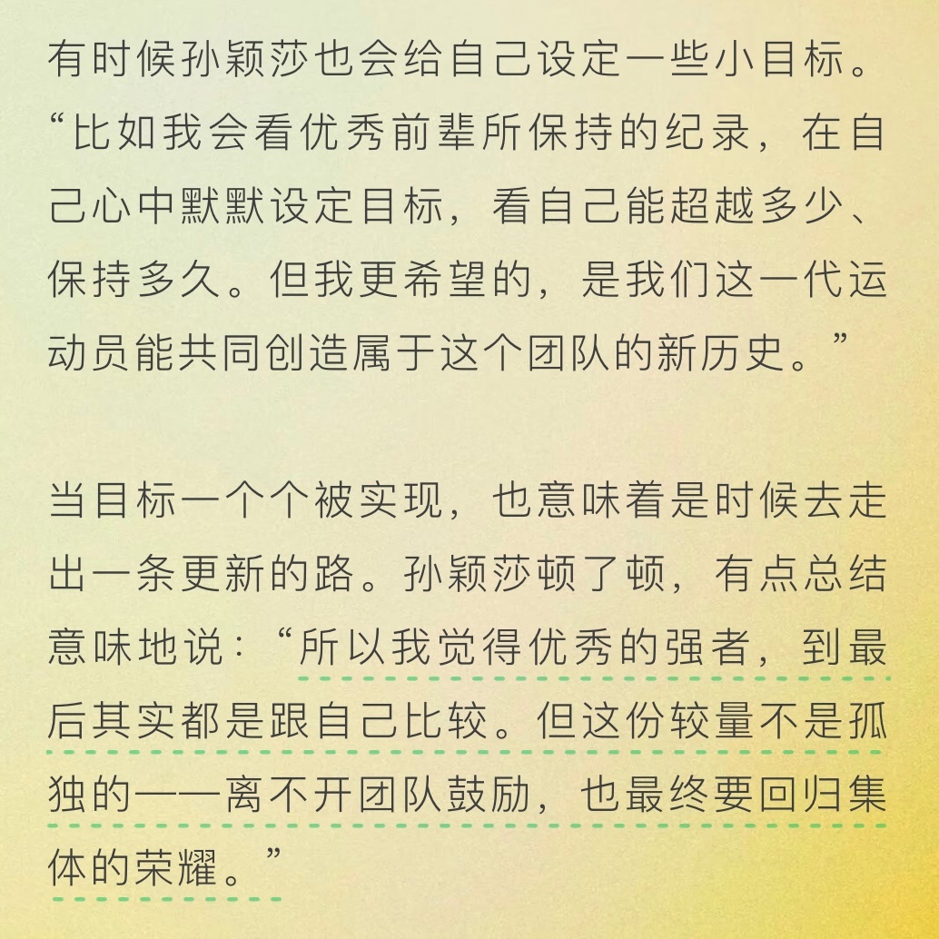 离不开团队鼓励,也最终要回归集体的荣耀。