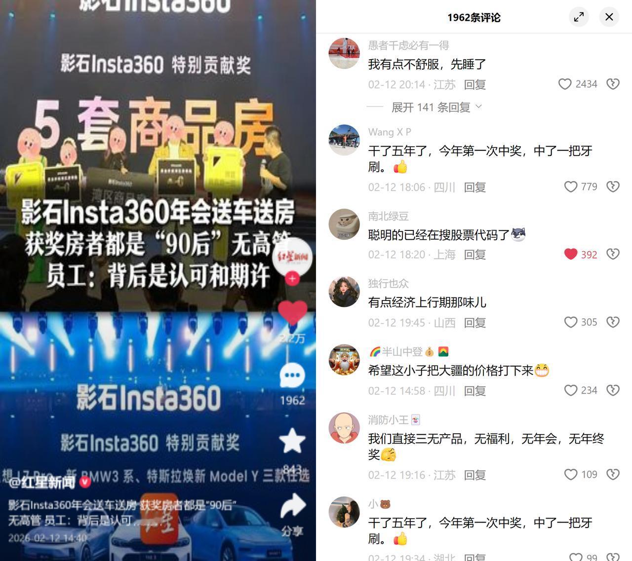 影石年会狂送5套全款房! 全给90后普通员工,半毛钱关系都没给高管! 还有个入职不到2年的小伙,穿COS服领奖时说奖不重要,认可才是。公司还说这是扎根约定并无绑定之意,豪车随便挑,年会中奖率直接干到80%! 再瞅瞅咱们打工人的惨状:有人干五年中一把牙刷,有人年会发加班泡面卡,更绝的是还有人倒欠公司绩效,甚至连年会都没有的三无选手大有人在! 这反差直接击中所有打工人的命门啊! 这年头谁还信老板画的饼啊?比起虚无缥缈的未来可期,我们更想要实打实能攥在手里的安全感! 当别家把福利缩水成冷笑话,影石直接把能扎根的家砸到你面前,这才是真把员工当自己人的实在劲啊! 说不羡慕那是嘴硬,但更多是酸里带点暖:原来真的有公司懂,打工人要的终极归属感,绝不能是空头支票!你今年年会中啥了?