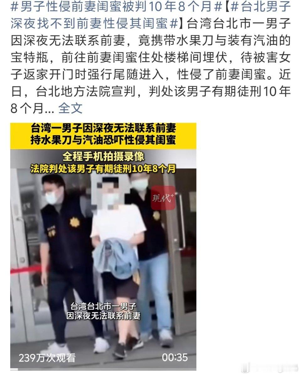 男子性侵前妻闺蜜被判10年8个月这是人吗…以后闺蜜们得小心点了