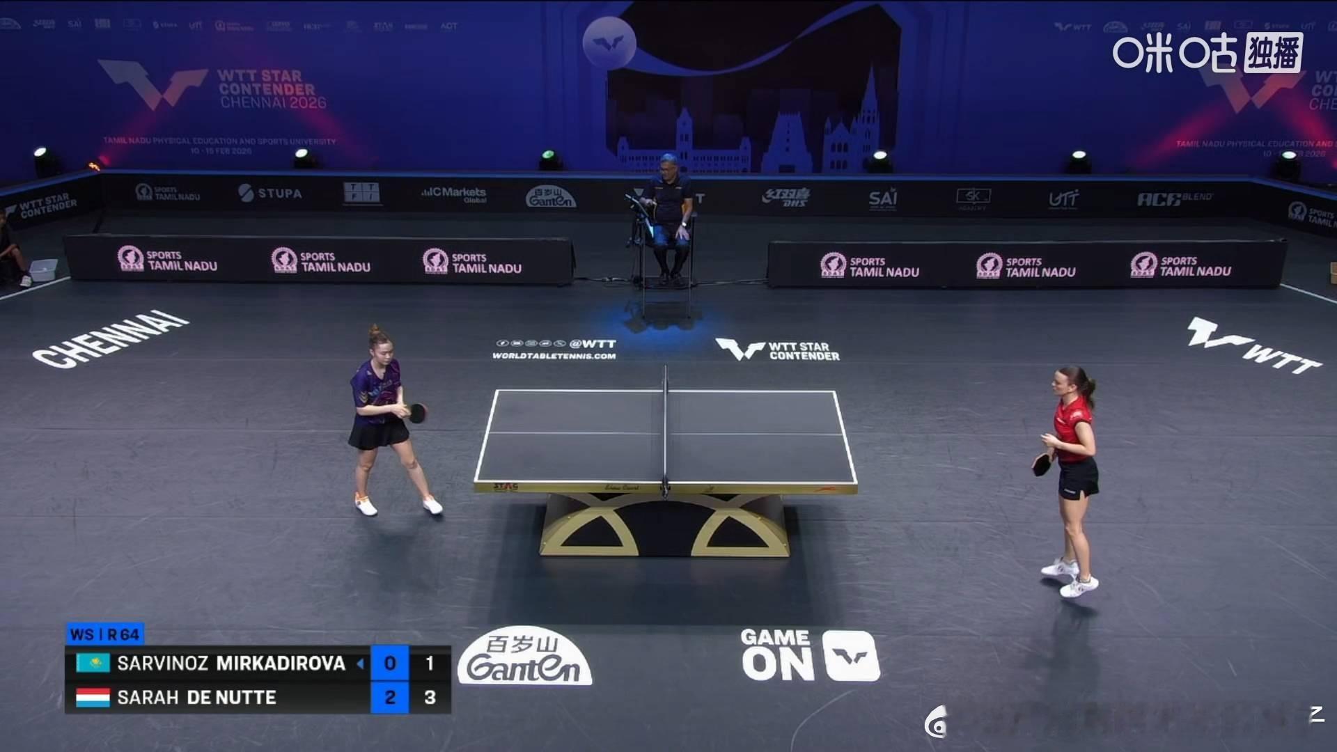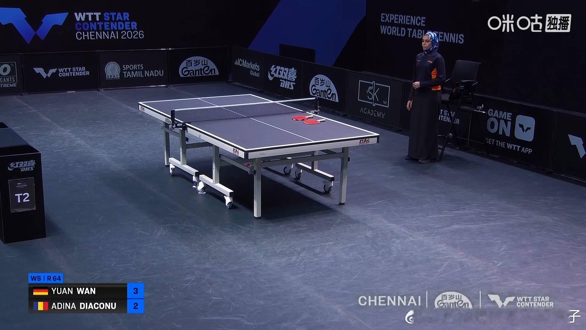 万远3比2迪亚科努(8,5,-11,-11,13)德努特3比0米尔卡迪罗娃(6,9,3)晋级2026WTT金奈球星挑战赛女单三十二强下一轮:万远🇩🇪VS萨马拉🇷🇴、德努特🇱🇺VS赫尔希🏴