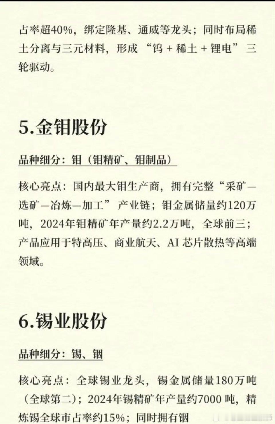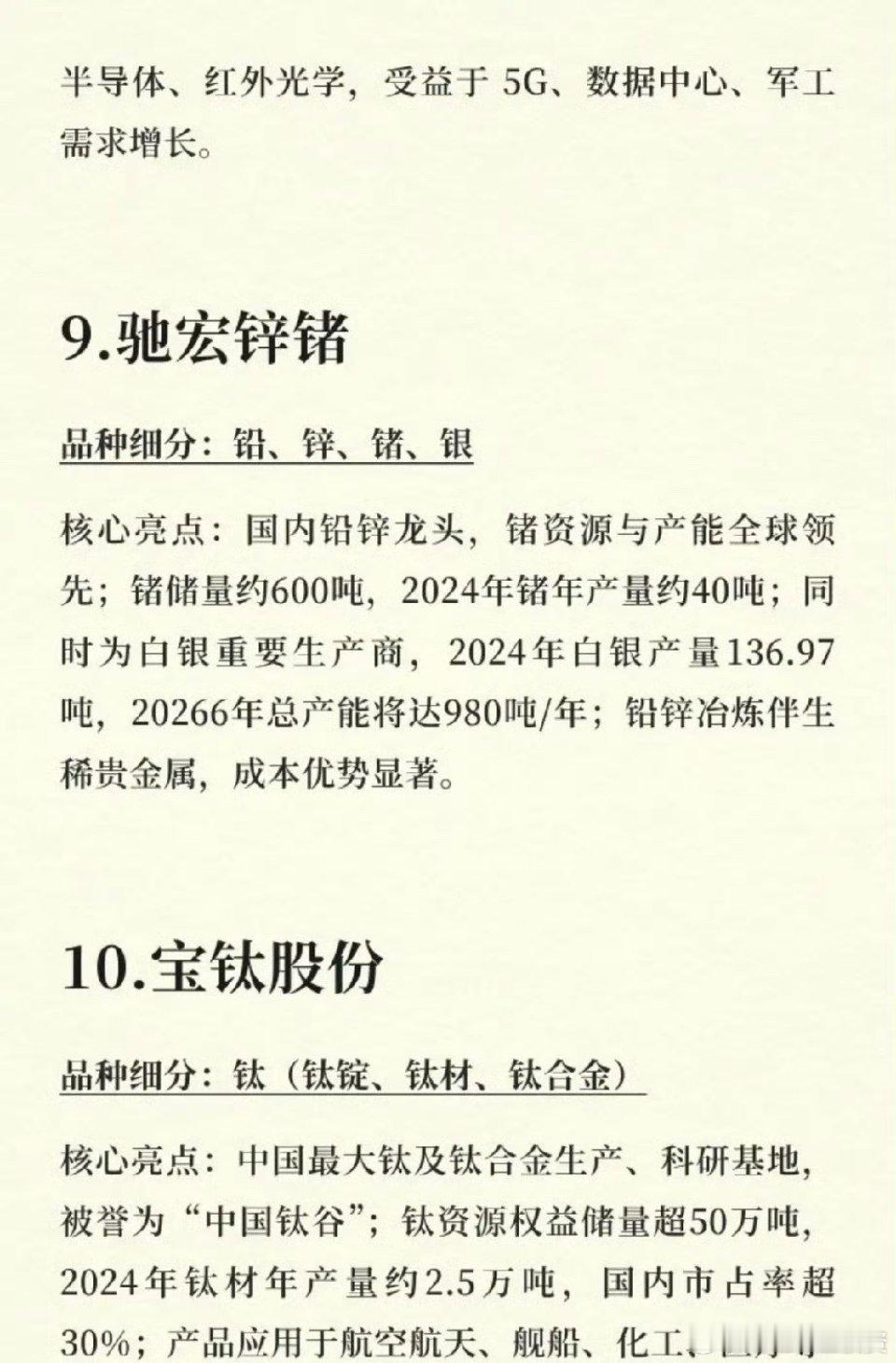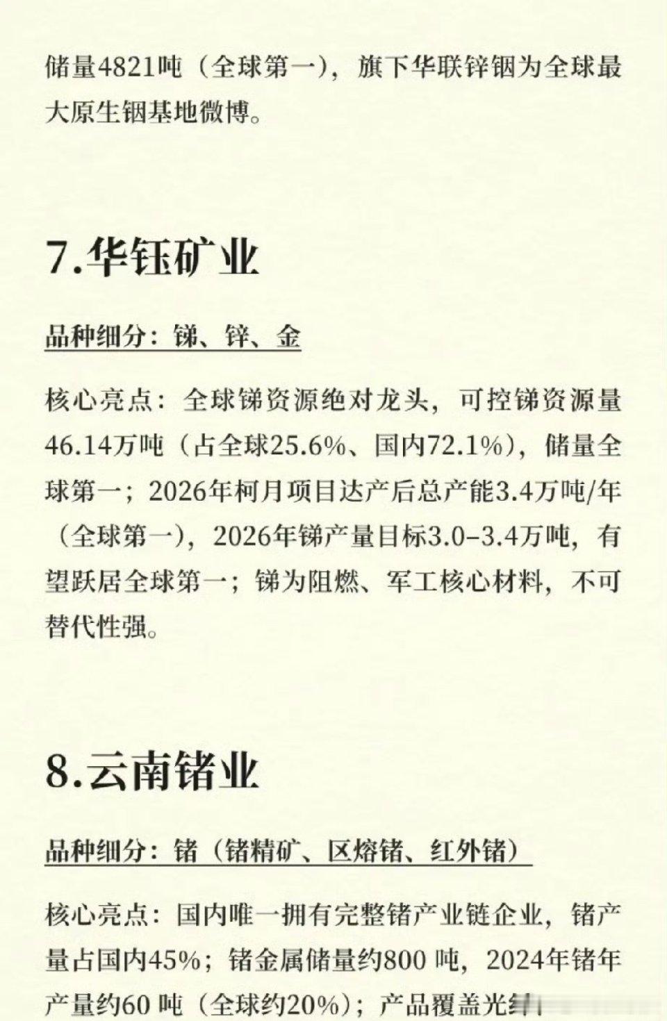 有色“战略金属”大年:储量前十龙头的价值重估春节后,全球地缘博弈与科技产业升级共振,稀土、钨、锑等战略金属成为市场焦点。从北方稀土的轻稀土到华钰矿业的锑资源,国内有色产业链储量前十的核心公司,正站在“资源自主可控”与“高端制造升级”的双重风口上。热点切入:战略金属供需重构全球对关键矿产的争夺日趋激烈,我国作为稀土、钨、锑等金属的储量和产量大国,政策端对资源管控持续收紧。同时,新能源、AI芯片、军工等高端产业的爆发式增长,对镨钕、钨、铟等金属的需求呈刚性增长,供需格局重构为板块提供了强劲的上涨动力。核心逻辑:资源储量与产业链话语权核心逻辑在于“储量为王”。北方稀土以超1500万吨轻稀土储量占据全球龙头,中国稀土掌控中重稀土配额,华钰矿业的锑资源储量全球第一,这些公司凭借稀缺资源,在产业链中拥有绝对定价权。同时,像厦门钨业“钨+稀土+锂电”三轮驱动,驰宏锌锗铅锌伴生锗银的成本优势,进一步巩固了其行业地位。案例佐证:稀缺性驱动价值重估以锑为例,华钰矿业可控锑资源量达46.14万吨,占全球25.6%,作为阻燃和军工核心材料,其不可替代性凸显。随着柯月项目2026年达产,公司有望成为全球最大锑生产商,资源价值将得到重估。产业链延伸:从资源到高端制造有色板块正从单纯的资源开采向高端材料延伸。宝钛股份作为“中国钛谷”,其钛材广泛应用于航空航天;云南锗业的锗产品覆盖光纤、半导体,受益于5G和数据中心建设。这种从“卖资源”到“卖技术”的转型,打开了公司的成长空间。风险提示:投资有风险,入市需谨慎。有色板块受全球宏观经济、地缘政治及大宗商品价格波动影响。