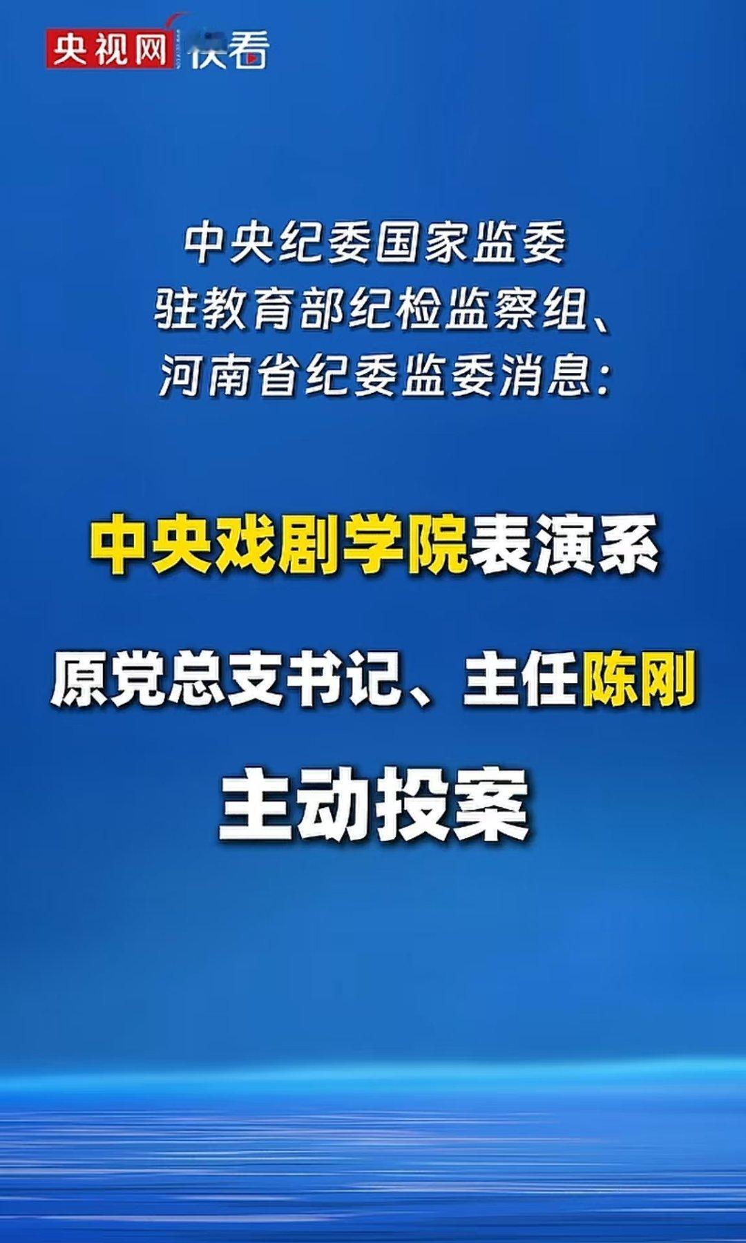 中央戏剧学院表演系原党总支书记陈刚主动投案