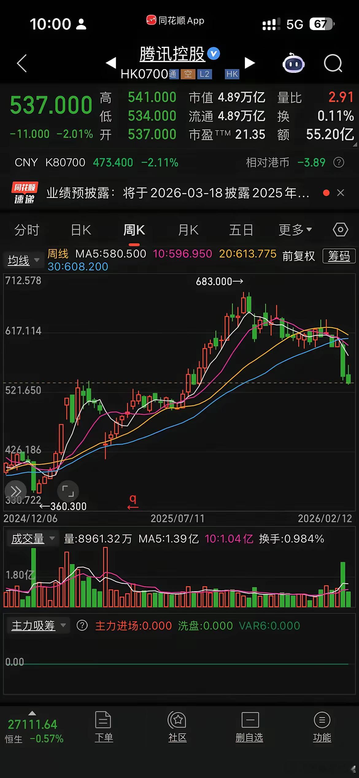 腾讯最近股价在静默期跌跌不休,主要是腾讯Ai方面表现的拉垮,元宝使用方面落后于豆包、千问等。加上10亿元春节红包太老套过时等操作,相比千问30亿元补贴活动太暗淡了。现在腾讯21倍估值左右也算合理,已经不再低估。如果股价再往上走就是公司未来成长的钱了,但是Ai未来变现能力是个未知数。所以只能寄托游戏出海利润继续大涨. 大家觉得腾讯未来股价突破1000元呢要多久呢?探讨一下…..