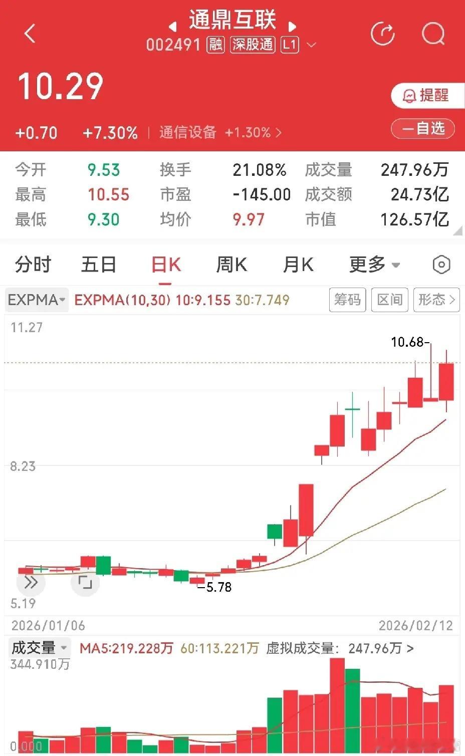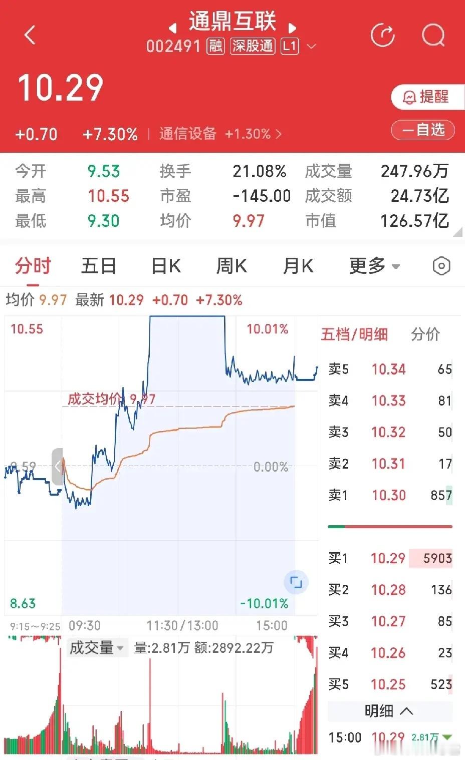 通鼎互联近期走得很稳,红肥绿瘦、缓步抬升,昨天收出倒锤头,本以为要调整,今天直接弱转强上板。好不容易封上涨停,午后却主动炸板,节奏很迷。更像是资金在刻意制造分歧、清洗浮筹,后续能否重回强势,关键看支撑位能否守住。