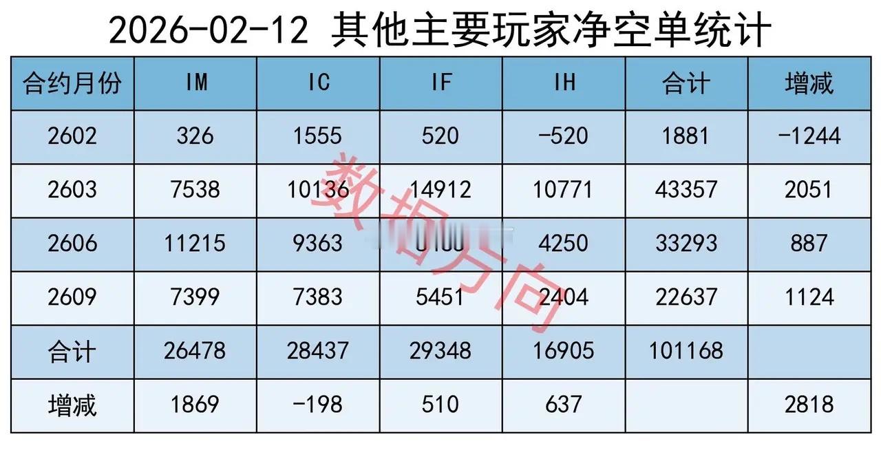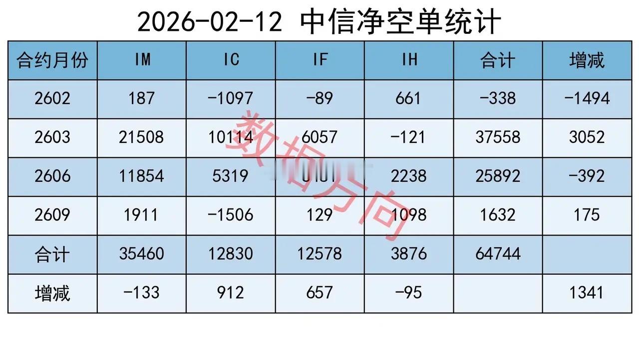 合计加空4159手,不是好信号。合计对IH、IF加空1709手,合计对 IC、IM加空2450手。操作完成后,共持有净空单165912手,此数据再创历史新高!之前的纪录是1月29日的162596手。