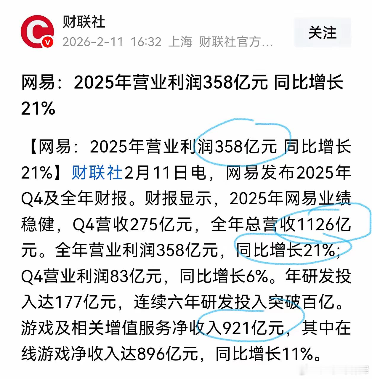对网易的印象还停留在那个门户网站,但今天看到它2025年的年报,年营收1100多亿,利润350多亿,增速仍可达20%以上,厉害呀!