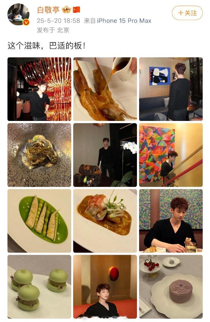 疑似宋轶白敬亭没分手白敬亭宋轶晒同款餐厅背景白敬亭去年五月份打卡一家餐厅,前几
