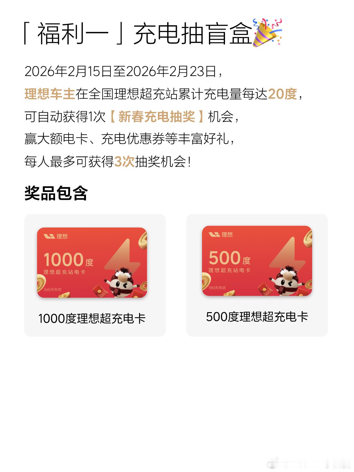 希望我能中奖!因为我中了我就可以给你们抽了还好阿勒泰好几个理想超充站不然像去年我