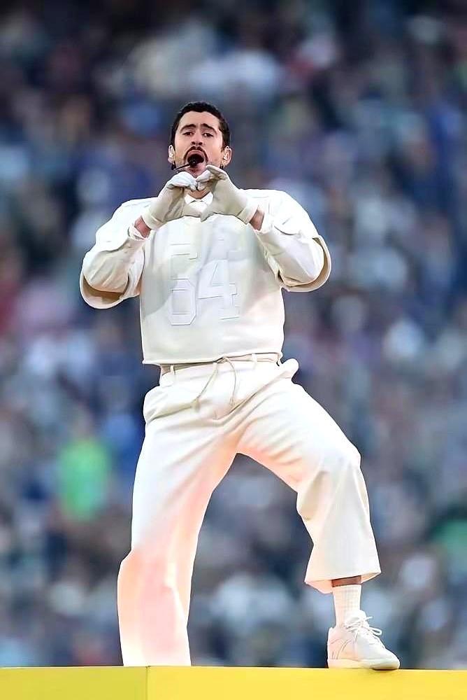 他站上美国“春晚”舞台,一张嘴,全场英语观众都懵了。 2026年超级碗中场秀,坏痞兔用13分钟纯西班牙语轰炸全场。背后是波多黎各的糖蔗田和旗帜,他对着亿万镜头报出本名:“我叫贝尼托·安东尼奥·马丁内斯·奥卡西奥。”一周前,他的全西语专辑刚拿下格莱美年度最佳,创造了历史。 你想想,一个从不说英文歌词的人,凭什么?就凭数据说话:Spotify常年霸榜,演唱会秒空,首日40亿播放量。这不是奇迹,是实力碾压。 真正的霸气,不是靠讨好,而是凭实力;不是靠改变,而是靠坚持。当你足够强大,世界终会为你的声音调频。