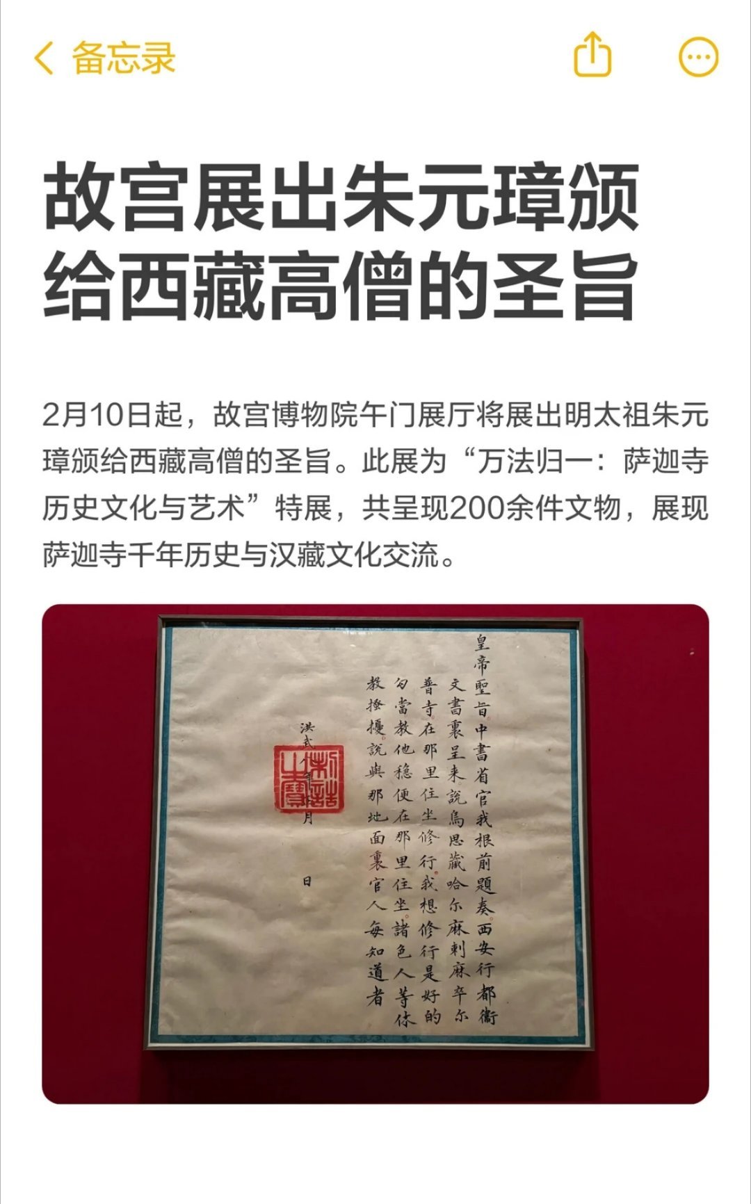 故宫展出朱元璋颁给西藏的圣旨,让“明朝不实控西藏”的历史虚无不攻自破!