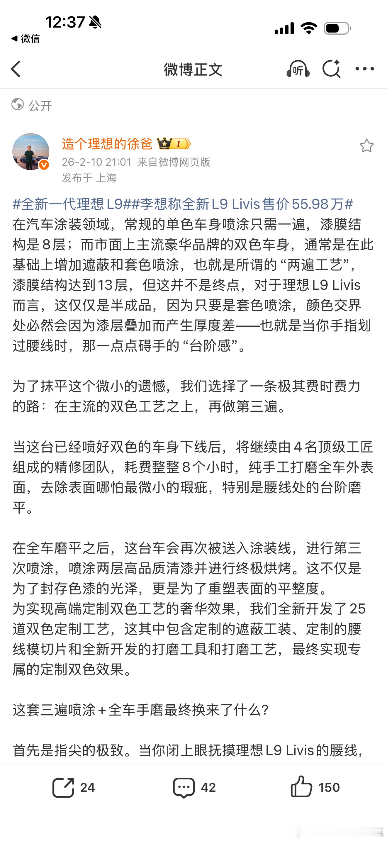 感谢奇怪的小知识又增加了大家来看看真·双色质感车身如何打磨2026款理想L9李想