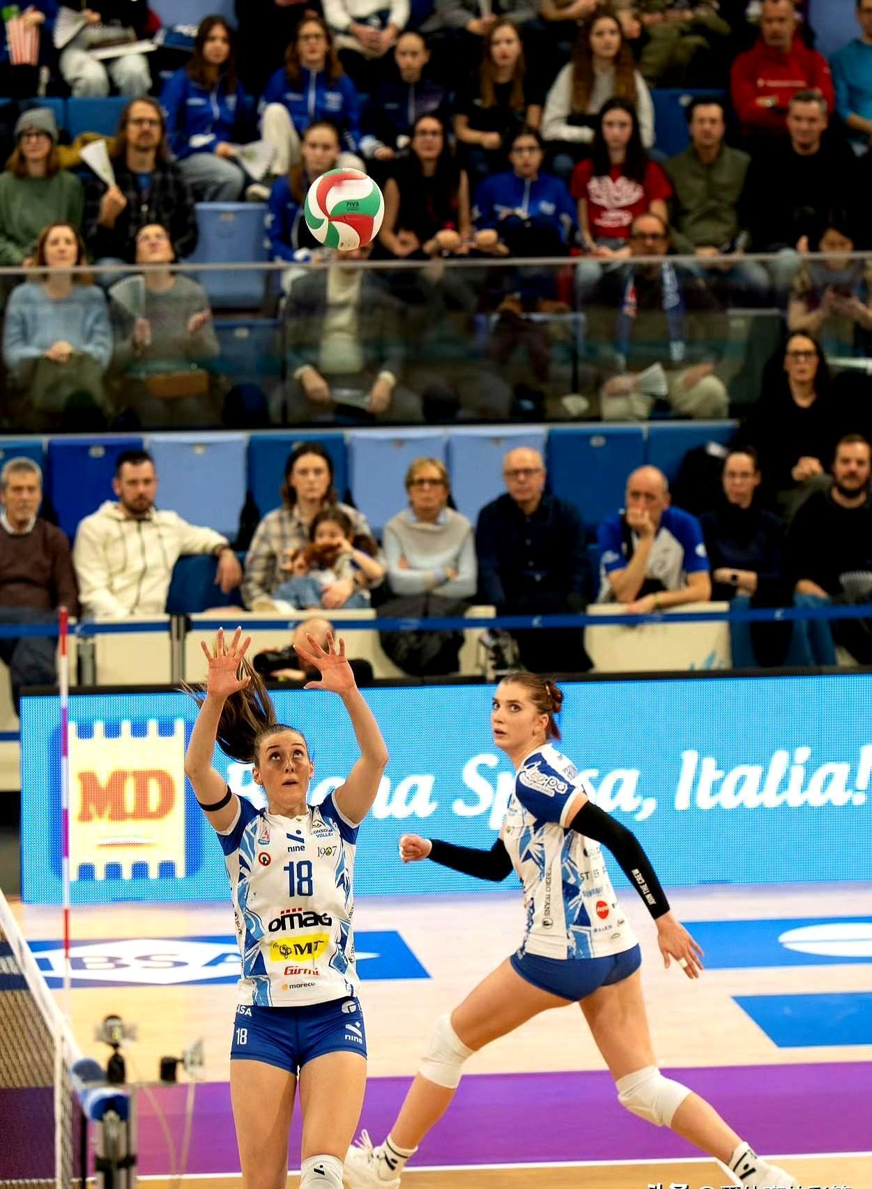 面对埃格努的重炮发球,她接了42个,一个都没丢。 第二局打到23平,就是她的一传稳稳送到网口,队友才能组织起反击。最后一记暴扣砸在地板上,25比23,硬是从豪门米兰手里扳回一城。全场她拿下12分,一传到位率接近七成。 这个叫庄宇珊的中国姑娘,去年底才登陆意甲。现在联赛还剩两轮,她的球队和另外四支队挤在降级悬崖边,多赢一场就能活。在她之前,能在这里站稳脚跟的,只有朱婷和李盈莹。 朱婷和李盈莹之后,谁会是下一个?