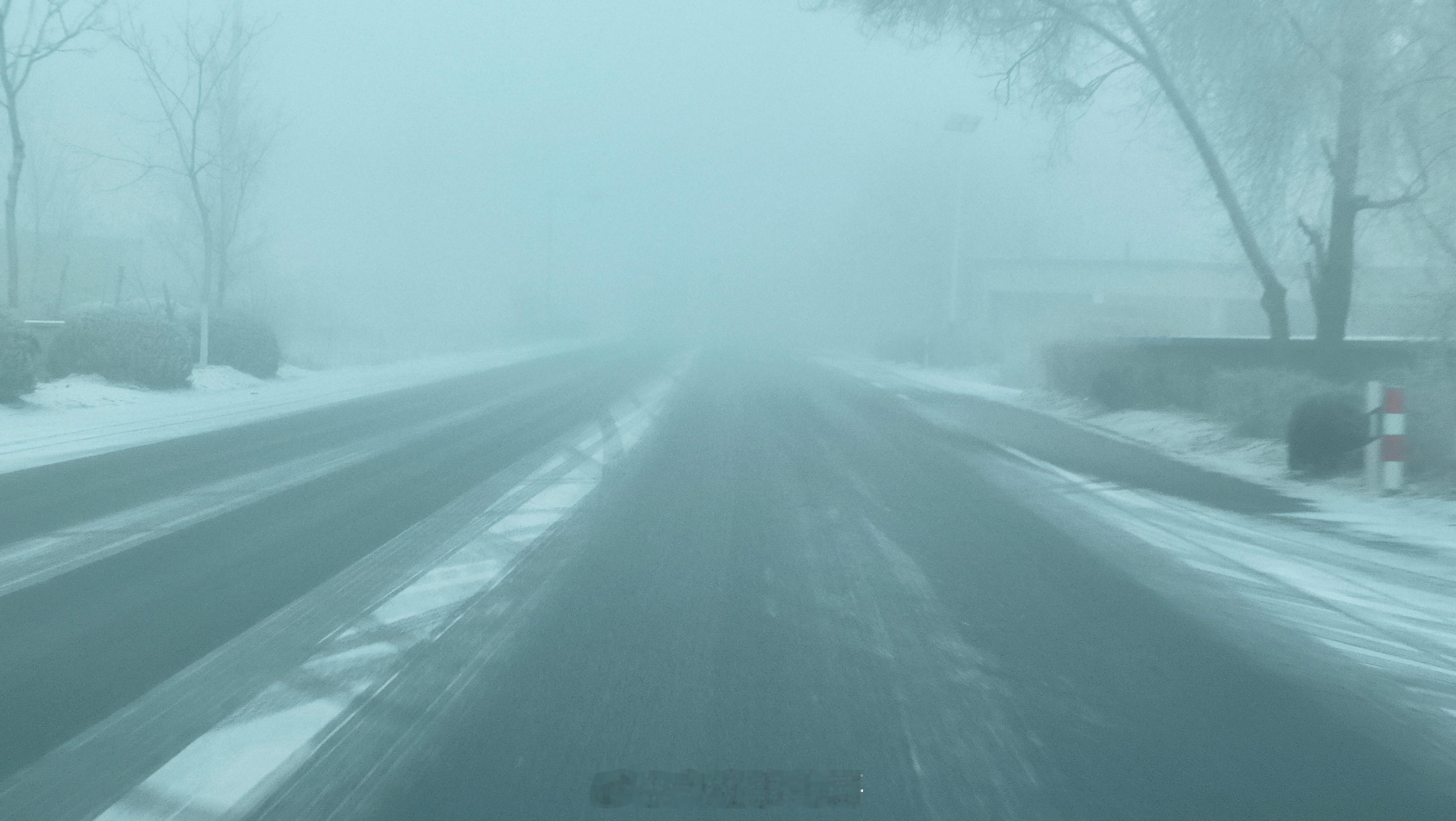 201国道,庄河至大连大雾,局部路段结冰。特别是金州转角房路牌西行结冰。 亮甲店路段结冰。