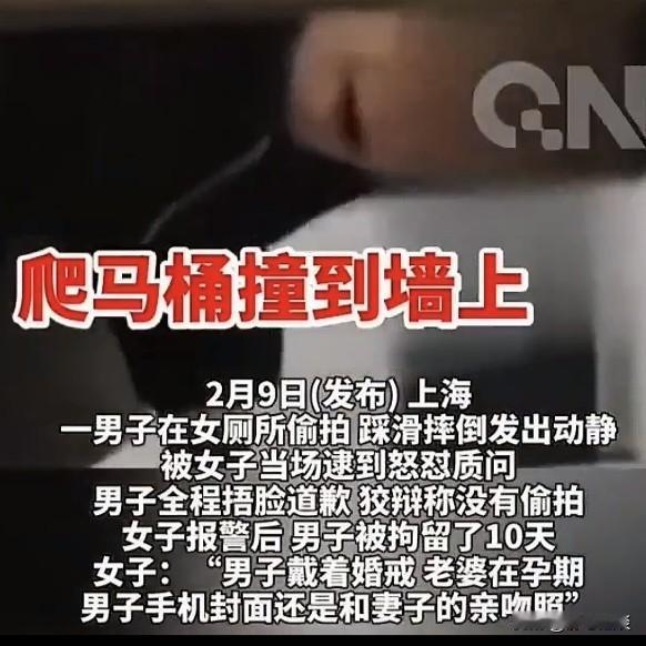 脸都不要了!上海,一名27岁男子趁下班人少,偷偷溜进女卫生间偷拍,碰巧一女子上厕所,突然听到隔壁有动静,抬头竟和男子四目相对,原来男子站在马桶沿滑落,当场被抓了现行。更让人无语的是,他戴着婚戒,手机屏保还是和妻子的亲密合照,妻子此时正怀着孕。面对质问,男子全程捂脸不敢抬头,还试图狡辩,女子没有心软,直接选择报警。最终男子被依法行政拘留10日,并被公司辞退。 一名27岁的男员工,趁着下班时间,楼道里人少、大家都陆续离开的空档,居然动起了歪心思。 偷偷摸摸溜进了女卫生间,想要偷拍。 一名女子忙了一下午,临回家急急忙忙去趟卫生间。 刚进去就听到隔壁有奇怪的声响,女子警惕地抬头,和男子四目相对。 女子吓得大脑一片空白,回过神来跑出去,堵在门口,把男子抓了个正着。 原来男子以为能悄无声息地做完龌龊事,没想到做贼心虚,脚下不稳摔到墙上。 男子为了偷拍,居然站到了马桶的边沿上,结果一个没站稳,脚直接打滑摔了一下,当场弄出了不小的动静。 女子也是个厉害人,没有吓得尖叫离开,堵在门口硬给男子揪出来。 本来做出这种偷拍的事就已经很丢人、很没有道德了,可接下来的事情,更是让人大跌眼镜。 仔细一看才发现,这名男子手上明晃晃戴着结婚戒指,手机的屏保还是他和妻子亲密亲吻的合照,明摆着是已经成家的人。 更让人无法接受的是,他的妻子此时此刻正怀着孕,本应该在家细心照料。 而作为丈夫的他,不仅没有好好照顾妻子,反而在外面干这种违背道德、触犯法律的龌龊事。 简直让人无法理解,也替他怀孕的妻子感到心寒。 被当场抓住后,这名男子全程低着头,用手捂着脸,根本不敢看女生的眼睛,一副做贼心虚的样子。 面对女生的愤怒质问,他不仅没有真心认错,还一直在不停狡辩,试图为自己开脱。 一会儿说自己只是看看没有偷拍,一会儿又说自己是别的楼层的员工,想蒙混过关。 但女生一点都没有心软,也没有被他的狡辩忽悠住,非常清醒、果断地选择报警。 没有给这个猥琐男留任何情面,也没有让他轻易逃脱处罚。 警方赶到之后,经过调查核实,依法对这名实施偷窥、偷拍侵犯他人隐私的男子,处以行政拘留10日的处罚。 而他所在的公司得知这件事后,也第一时间做出了处理,直接将他辞退。 这种品行不端、违法乱纪的员工,没有任何单位会留用。 事情曝光之后,有人指责男子的无耻行为,可怜他怀孕的妻子。 有人为这位勇敢报警的女生点赞,直呼“干得漂亮”真解气! 正是因为女生的勇敢和不妥协,才让这个猥琐男得到了应有的惩罚。 也给那些有歪心思的人提了个醒,任何侵犯他人隐私、违背公序良俗的行为,终究都会付出代价。 也有人担心,女子要保护好自己,遇到危险,第一时间要保证自身安全。 目前涉事写字楼的物业也表示,会立刻对卫生间进行整改。 加高厕所隔板,加强安保管理,避免类似的事情再次发生。 《治安管理处罚法》第42条:有下列行为之一的,处五日以下拘留或者五百元以下罚款;情节较重的,处五日以上十日以下拘留,可以并处五百元以下罚款: (六)偷窥、偷拍、窃听、散布他人隐私的。 男子故意进入女卫生间、站在马桶沿上偷拍女性如厕。 属于典型的偷 窥、偷拍他人隐私行为 ,因此对其行政拘留10日的处罚。 ​ @静心法谈 学法辨是非,慬法不吃亏。
