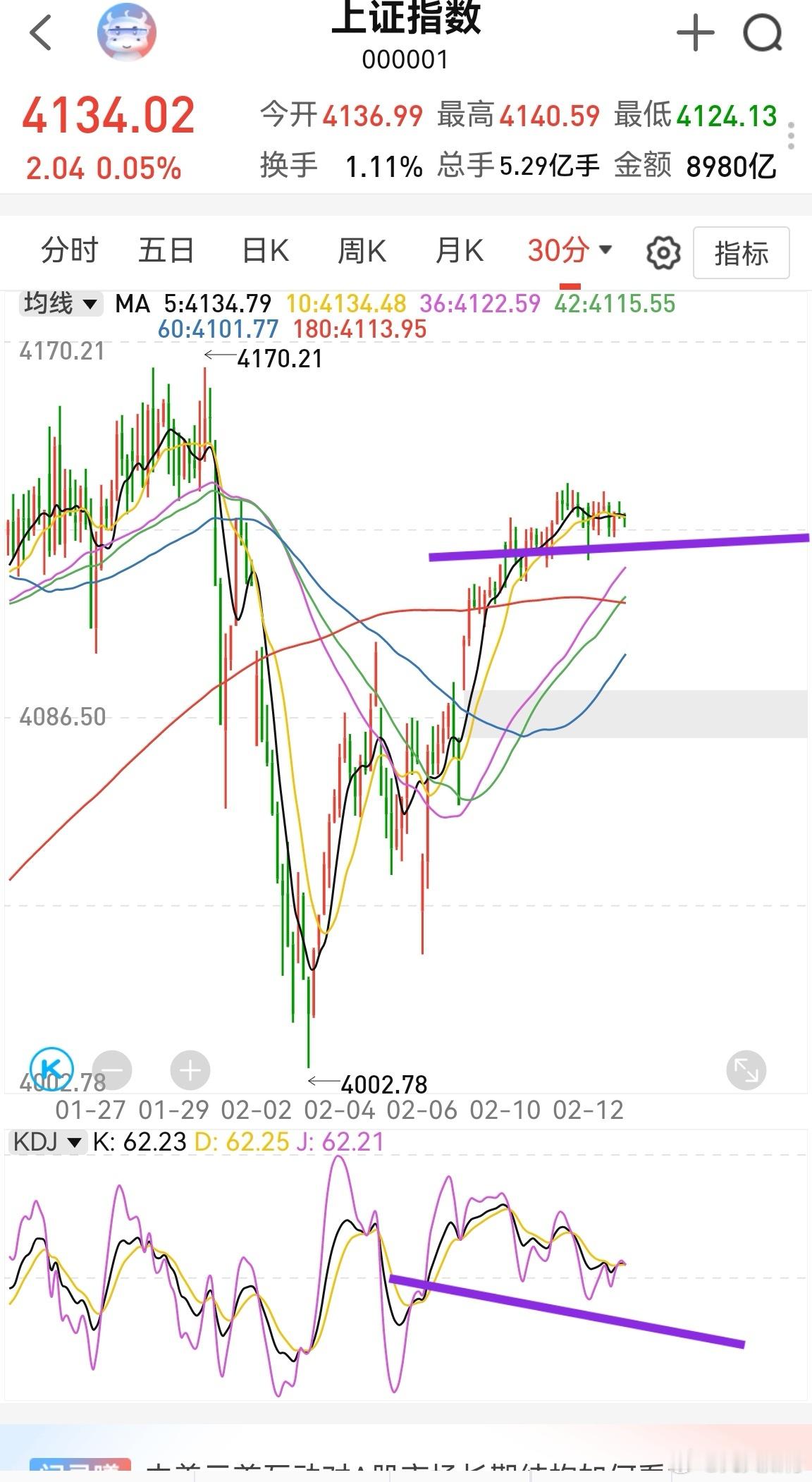 上证指数半小时表现平稳,今天估计也没多少跌幅,小阴小阳爬坡,4120有支撑。