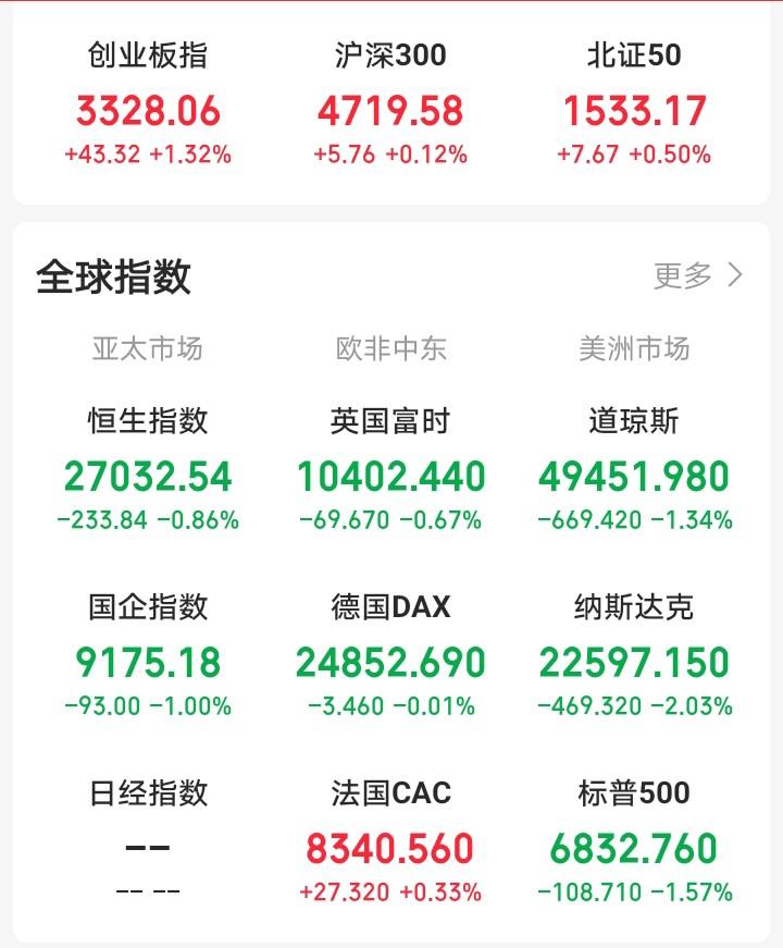 昨天晚上还想着大A连续收阳,今天大A还会反人性上涨! 一觉醒来,吓我一跳,中国资产多数下跌,现货贵金属黄金白银再次跳水,全球市场普跌,一片惨绿。富时中国三倍做多ETF大跌,纳斯达克中国金龙指数收跌,富时A50期指连续指数也收跌,老美三大指数集体收绿,氛围不算融洽!给大A今天走势蒙上了一层阴影。今天大A的九连阳压力不小! 隔夜,亚太市场、欧非中东、美洲市场全面普跌,全球市场,跌多涨少,一片绿,形势不大大好啊! 隔夜,道指收跌0.34%,纳指收跌2.03%,标普500收跌1.57%,富时中国三倍做多ETF大跌6.25%,富时中国三倍做空ETF上涨6.36%,富时A50期指连续指数下跌0.66%,纳斯达克中国金龙指数下跌3.00%,总体来看,中国资产多数下跌!氛围不算融洽! 广受关注的现货贵金属黄金白银再次跳水,截止发稿,国际现货白银大跌9.68%,报收74.72美元/盎司。现货黄金收跌3.04%,报收4906.38.27美元/盎司。 昨天还说贵金属近几日明显趋于走势平稳,有筑底反弹之势,今天就又向下跳水,真是看不懂了!看来贵金属真的是退潮了!建议暂时不要关注了,波动太大了,受不了这刺激,买了就是受罪! 隔夜外围氛围总体不佳,目之所及下跌居多,那么对大A今天走势必然产生不利影响。今天大A还有没有希望冲击九连阳,给大家发个节前红包,就看隔夜消息面怎么样了。 隔夜消息面: 消息一:2026年2月13日,中国人民银行将以固定数量、利率招标、多重价位中标方式开展10000亿元买断式逆回购操作,期限为6个月(182天)。 消息二:深圳市印发《“人工智能+”先进制造业行动计划(2026—2027年)》。 消息三:监管出手打击蹭热点炒作保护投资者,上交所发布关于对双良节能系统股份有限公司及相关责任人监管警示的决定。究其原因是双良节能在2月12日13时25分,在其公众号发布题为《双良节能再获海外订单,助力商业航天太空探索》市场快讯。但未说明供货方式,销售规模及后续订单不确定性,信息发布不准确,不完整,风险提示不足,被予以监管警示。 消息四:网信部门严打无AI标识虚假信息。部分网络账号发布AI生成合成信息时,不添加AI标识,存在利用虚假不实内容欺骗误导公众的问题,破坏网络生态,造成恶劣影响。 消息面上来看,两大利好,一大利空,一条不好不坏偏中性 总体偏利好。值得注意的是监管出手打击蹭热点炒作,直接利空热潮的高位票,建议暂时规避,不要轻易去抄底近期热炒过的高位票。 综上所述,外围走势不佳,消息面总体偏利好,而且从近期指数走势来看,明显稳中带强,窄幅震荡,还能收阳,当前维稳之心明显。今天是年前最后一个交易日了,再收一根阳线,九连阳,节前维稳任务就圆满完成了。那么今天大A只有一种走法,那就是全天窄幅震荡,再收一根小阳线,红红火火,喜庆洋洋迎接新春佳节! 人最重要的是,要保持积极良好的心态,积极乐观的过好每一天。心有光,脚下有路,你远比自己想象的更坚韧,追光的人,终会光芒万丈。 理财有风险,投资需谨慎。大家一定要保持谨慎,做好风险控制。 点赞,关注,是对我最大的支持!
