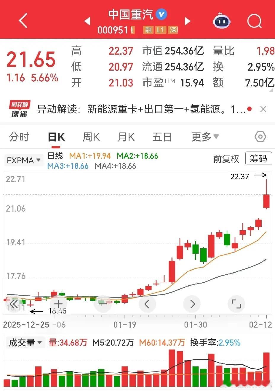 中国重汽19天16阳,红肥绿瘦、跳空走强,累计涨幅亮眼。敬畏市场,不随意追高,也不轻易看空,顺势而为最稳妥。
