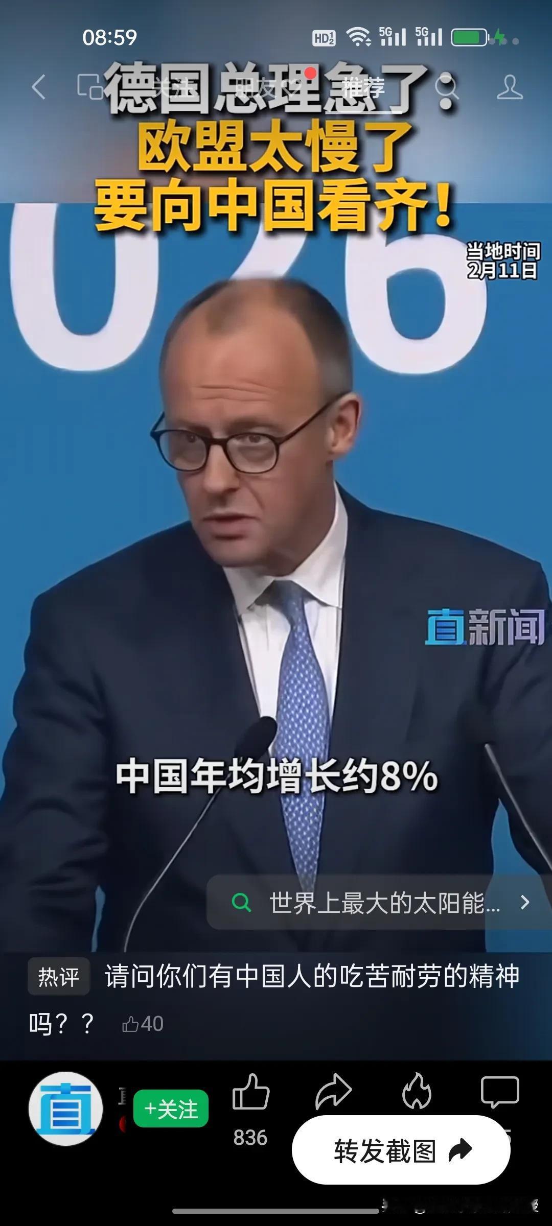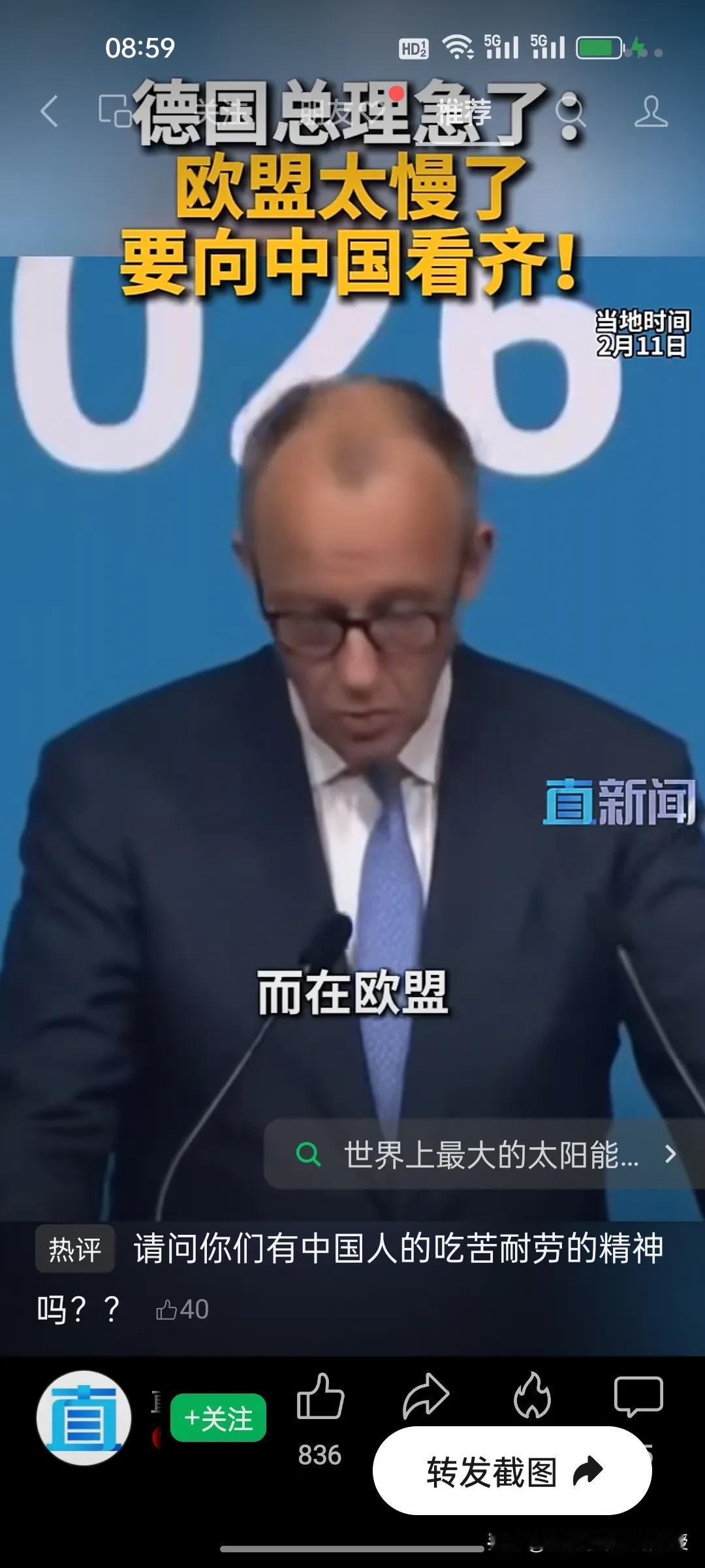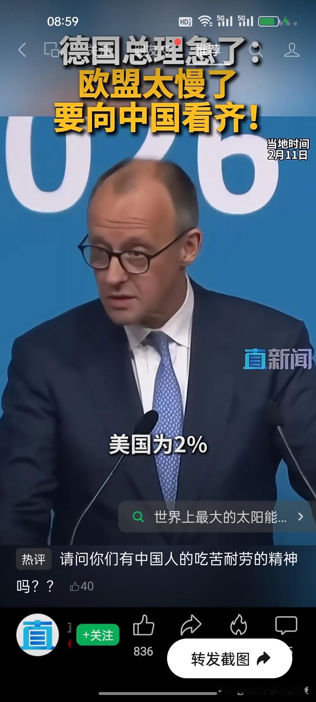 默茨喊话要赶超中国?先看看工时差距再说! 德国总理默茨急了,在峰会上直言欧盟效率太慢,要向中国看齐,尽快缩小经济上的差距。可光靠喊话有用吗? 1、中国工人平均每周工作约48.7小时,是全球工时最长的国家之一。 2、德国工人每周仅工作约34.5小时,法国更是只有32小时,欧盟平均工时也仅在37小时左右。 3、在假期方面,欧洲人一年比中国人多休10–20天。法国每年假期合计为36-41天,德国为29-43天,而中国位18-28天,再加上欧洲人动不动就大罢工,工作时间更是少之又少。 4、默茨说,中国能在几个月内建成世界最大太阳能电场,而欧盟一个项目审批就要数年,这背后是效率和执行力的天差地别。 欧洲人享受着高福利和短工时,却想复制中国的发展速度,没有吃苦耐劳的精神,体制不改,默茨的豪言壮语终究只是天方夜谭。 当前欧洲也只能靠“喊口号”追上中国了。