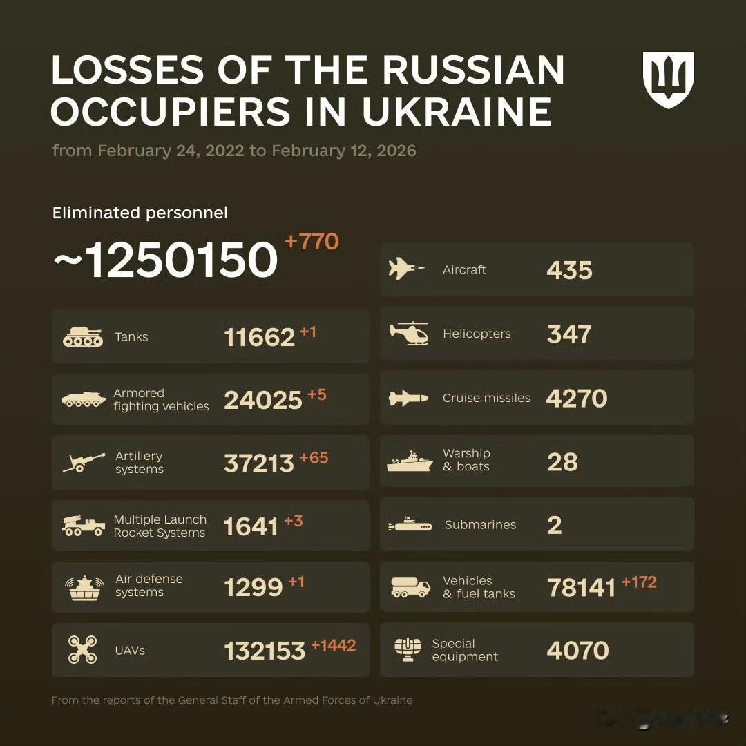 乌克兰自以为很聪明,连基本的加法都以为别人不懂,根据泽连斯基的意思,2025年去年一年,乌克兰仅阵亡了9000人,而根据俄乌双方的遗体交换数据,去年俄罗斯向乌克兰提供了至少16000具乌军遗体,所以要加上这个数据,乌克兰去年至少阵亡了1.6万,即使有重叠,也不会只有9000人。当然乌克兰不是首次犯这种低级错误,之前泽连斯基的说法,和乌克兰国防部的说法,也不一样,说明乌克兰伤亡情况,都是随意编造出来的,同样对于俄军的伤亡,乌克兰也是随意编造,根据乌克兰刚公布的战绩,俄军伤亡人数已经高达125万人。