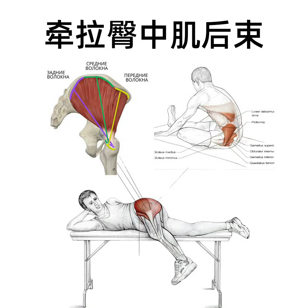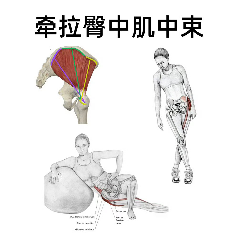 臀中肌有三组功能纤维:前、中、后三组,看图来get针对的放松拉伸方式 健闻登顶计划